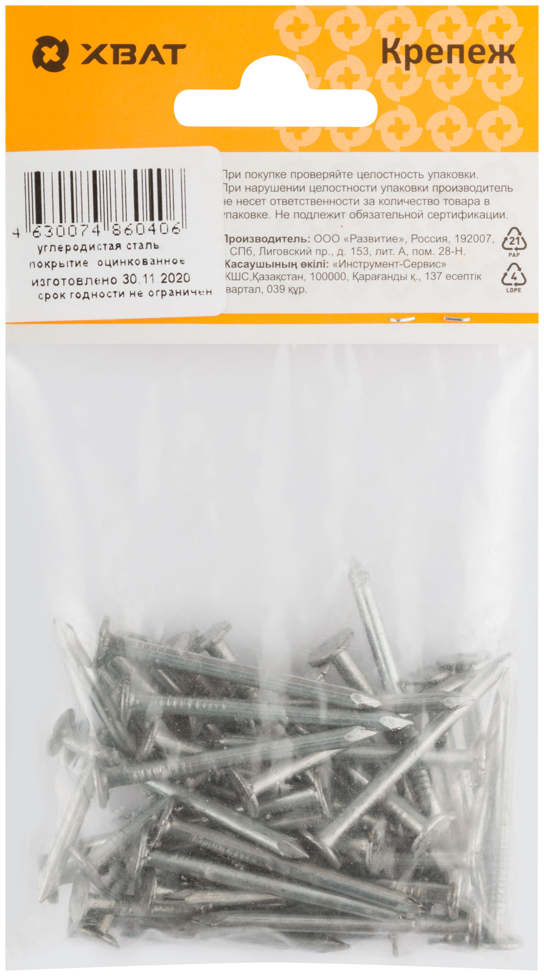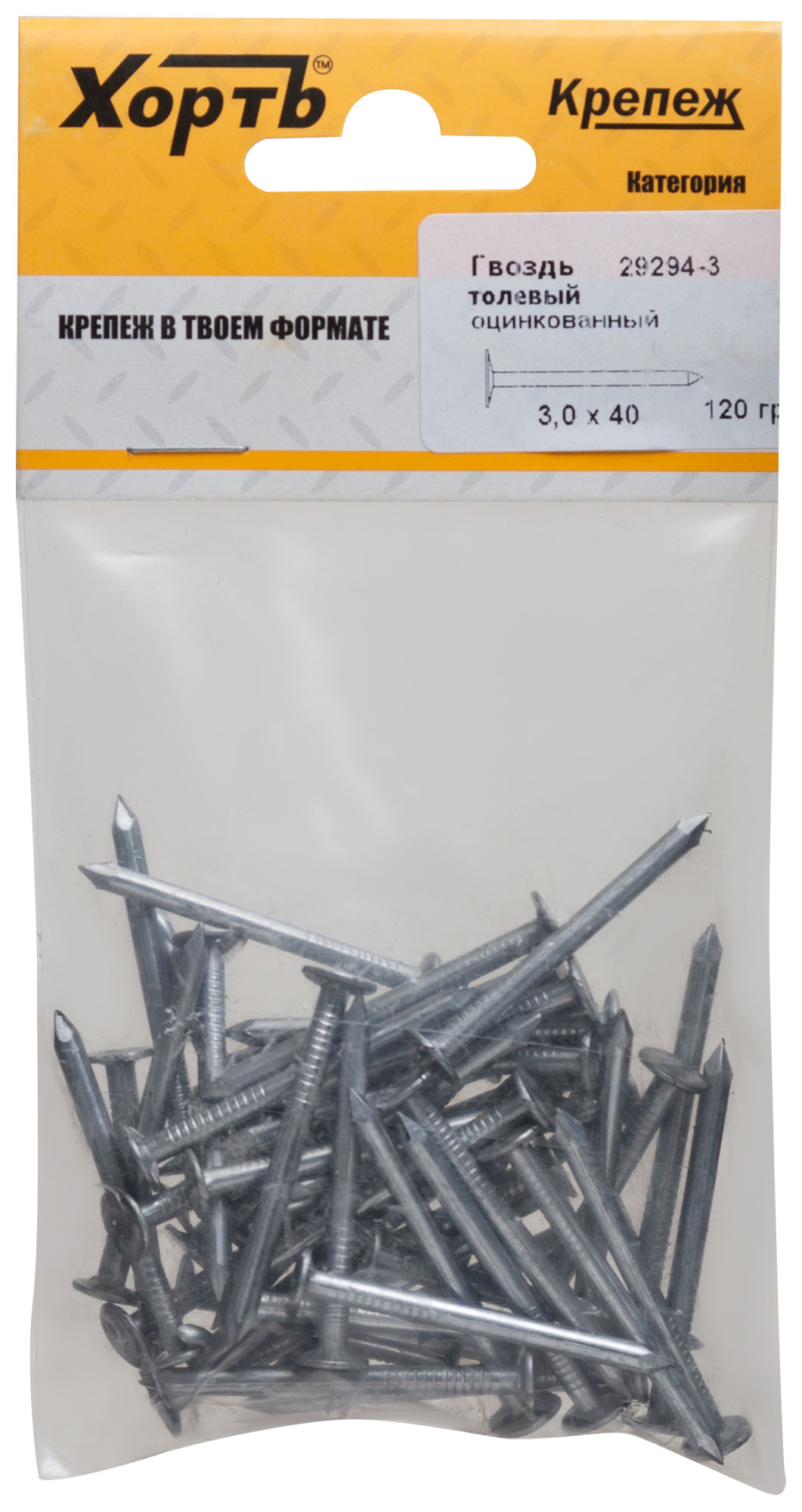 Гвоздь толевый оцинкованный 3 х 40 (фасовка 120 гр.)