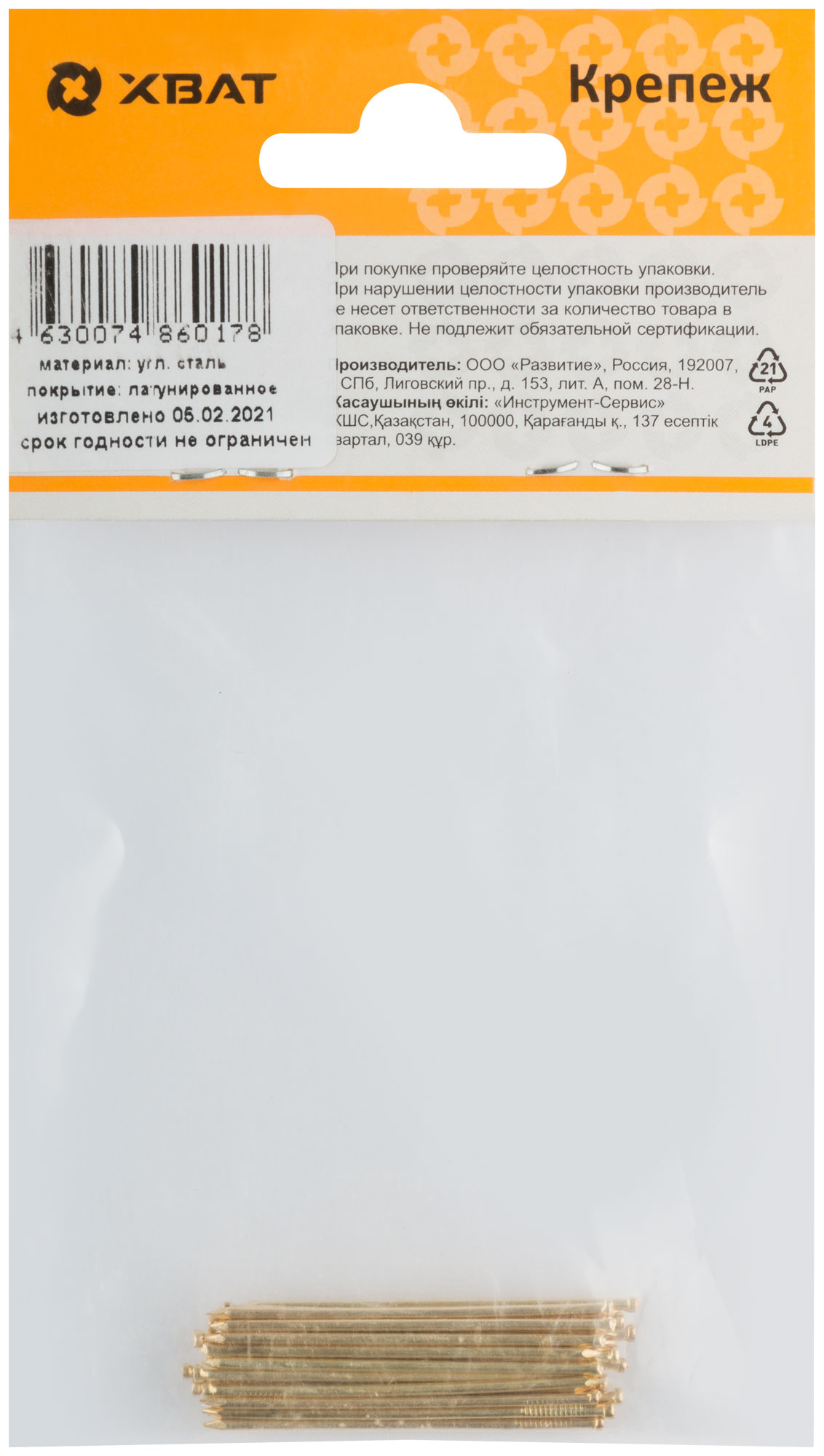 Изготовлен из стали. Латунированный. С уменьшенной шляпкой. Применяется для внутренней и наружной отделки, работы с деревянной вагонкой и т. д.