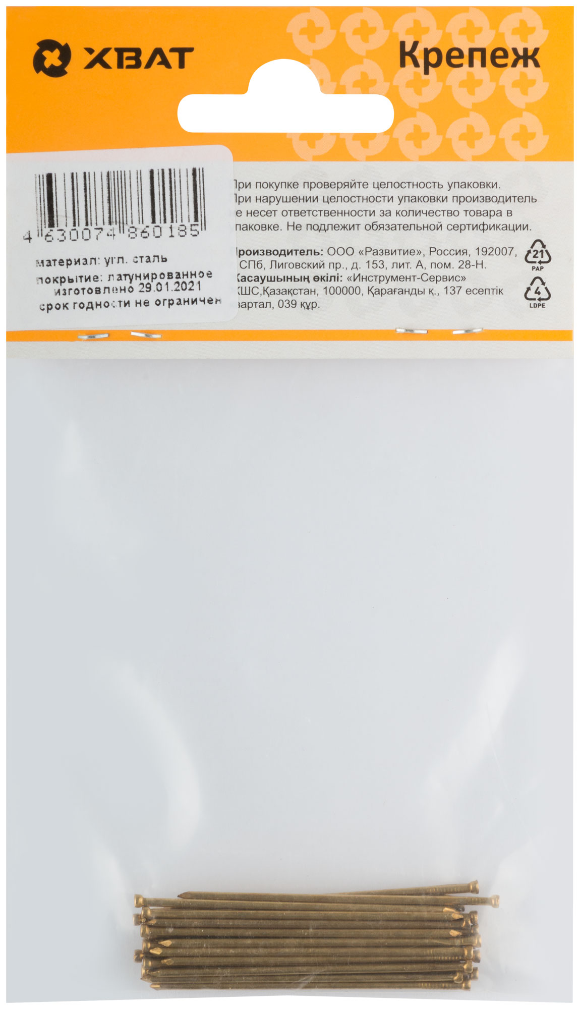 Изготовлен из стали. Латунированный. С уменьшенной шляпкой. Применяется для внутренней и наружной отделки, работы с деревянной вагонкой и т. д.