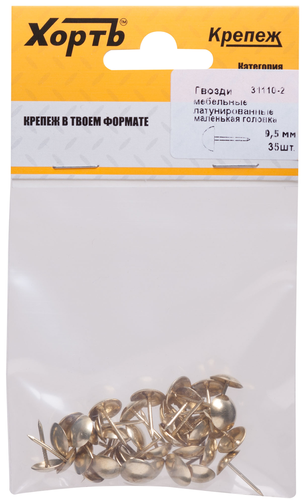 Гвозди мебельные латунированные, большая головка 9,5 мм (фасовка 35 шт.)