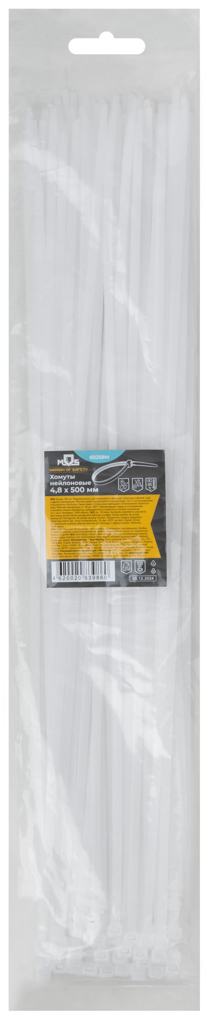 Хомуты нейлоновые для проводов, белые 100 шт., 4,8х500 мм