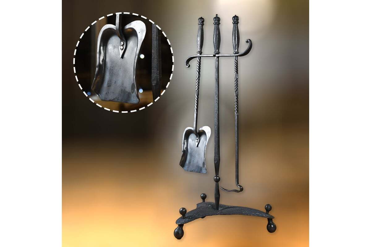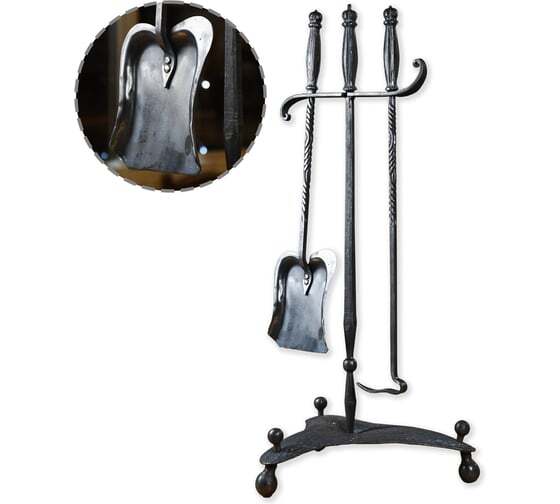 Каминный набор, напольный, 3 предмета. Этот выкованный вручную набор станет прекрасным дополнением к вашему камину или печи. Набор состоит из напольного держателя, кочерги и совка для золы.