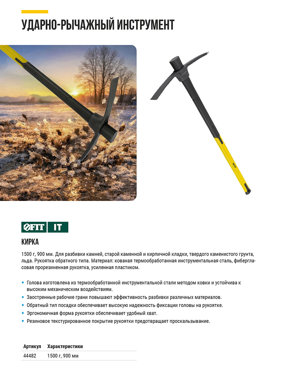 Кирка 1500 гр., фиберглассовая ручка 900 мм