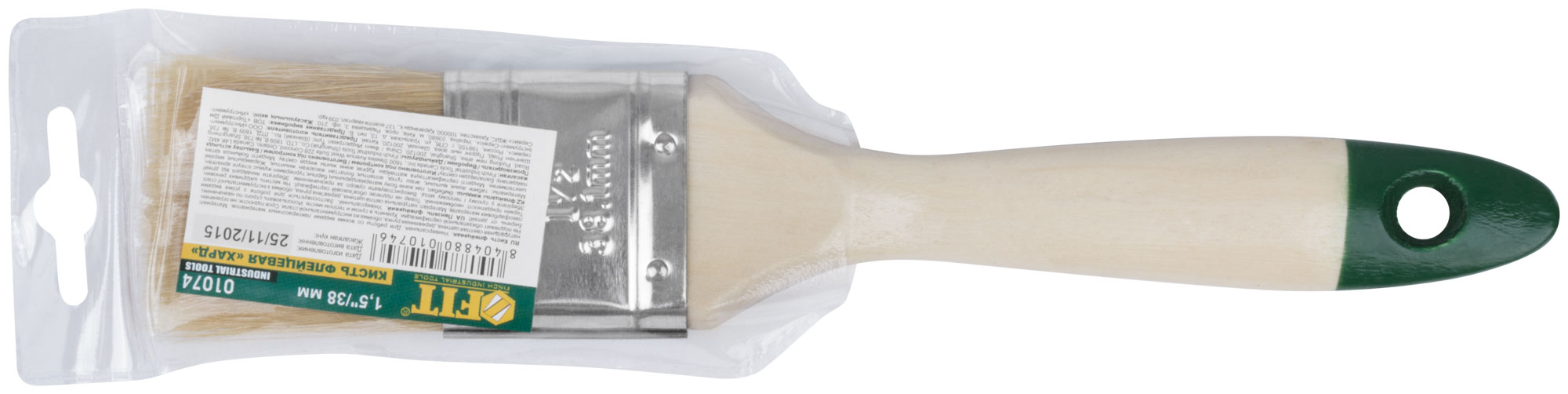 Кисть флейцевая "Хард", натуральная светлая щетина, деревянная ручка 1,5" (38 мм)