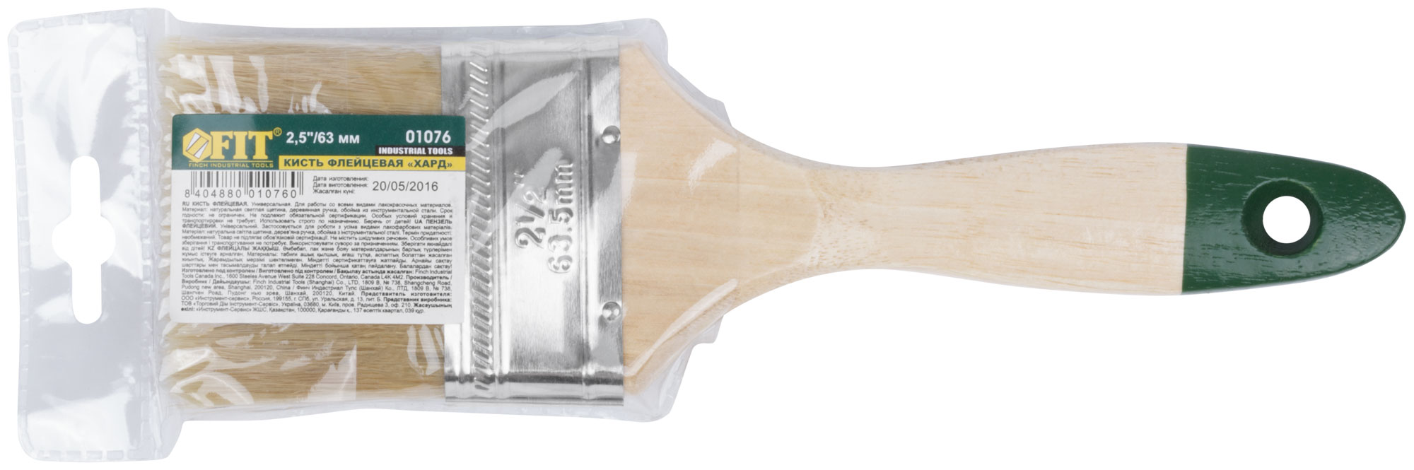 Кисть флейцевая "Хард", натуральная светлая щетина, деревянная ручка 2,5" (63 мм)