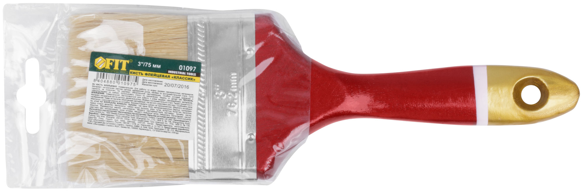Кисть флейцевая "Классик", натуральная светлая щетина, деревянная ручка 3" (75 мм)
