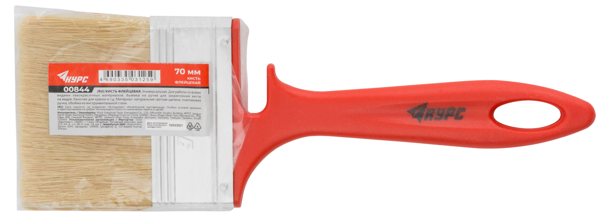 Кисть флейцевая "Крафт", натур.светлая щетина, пластиковая ручка с выемкой 70 мм