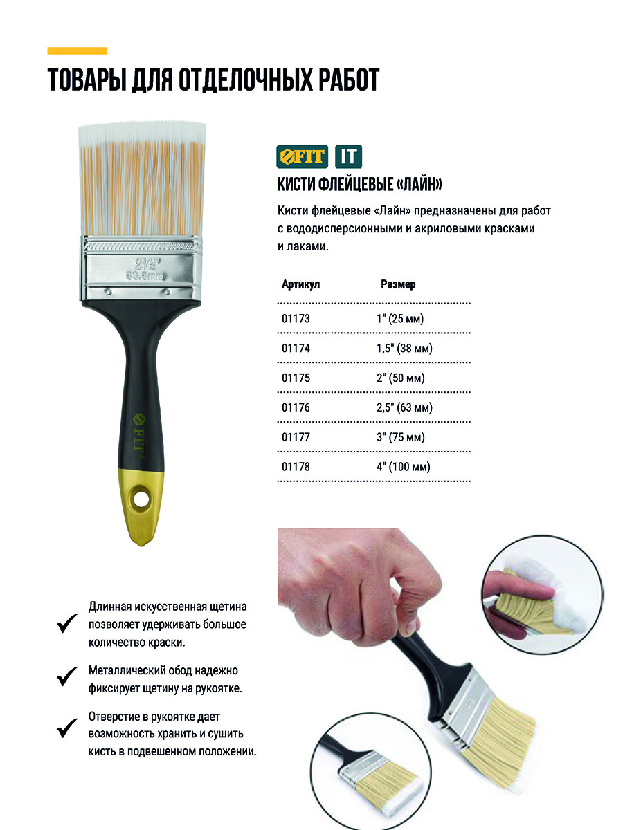 «Лайн». Для работы с вододисперсионными и акриловыми красками и лаками. Материал: искусственная щетина, пластиковая ручка.