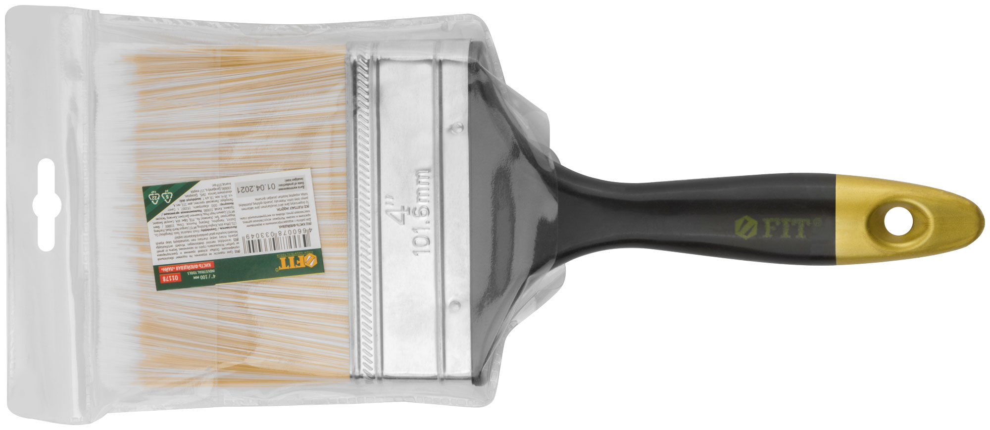 Кисть флейцевая "Лайн", искусственная щетина, пластиковая ручка 4" (100 мм)