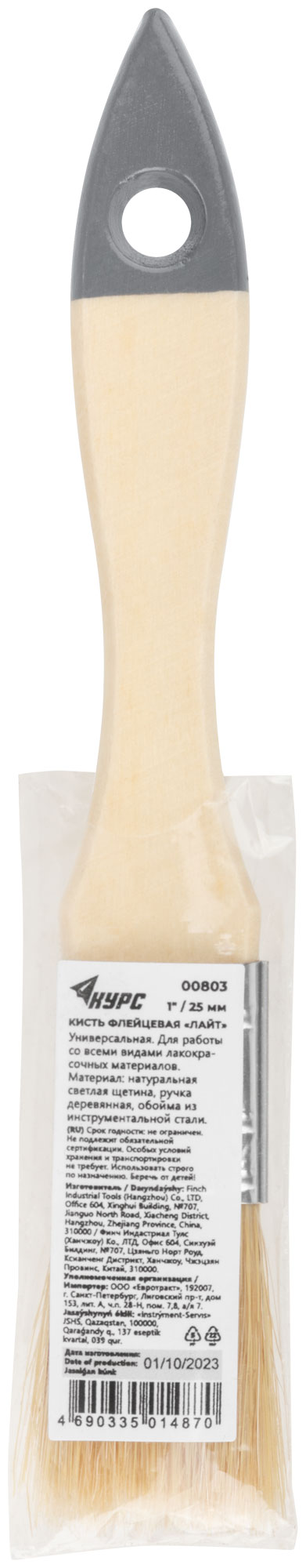 Кисть флейцевая "Лайт", натур. cветлая щетина, деревянная ручка 1" (25 мм)