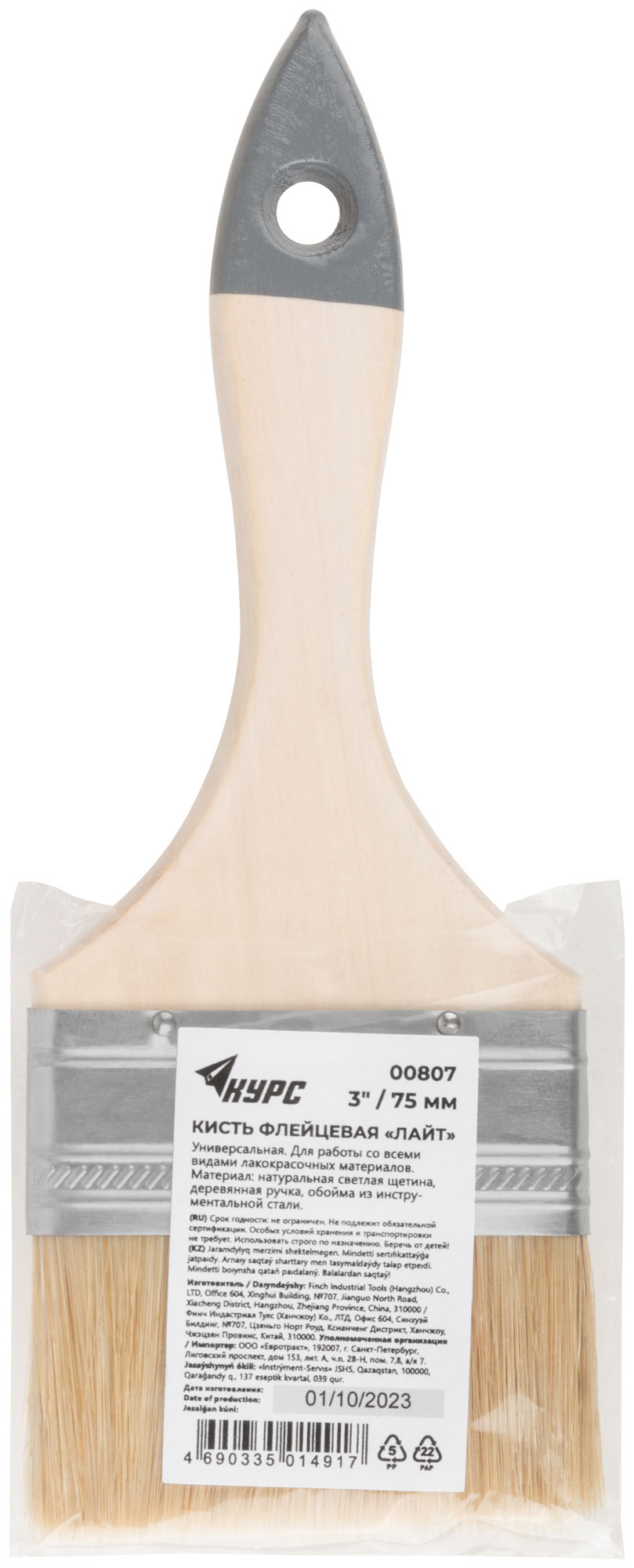 Кисть флейцевая "Лайт", натур. cветлая щетина, деревянная ручка 3" (75 мм)