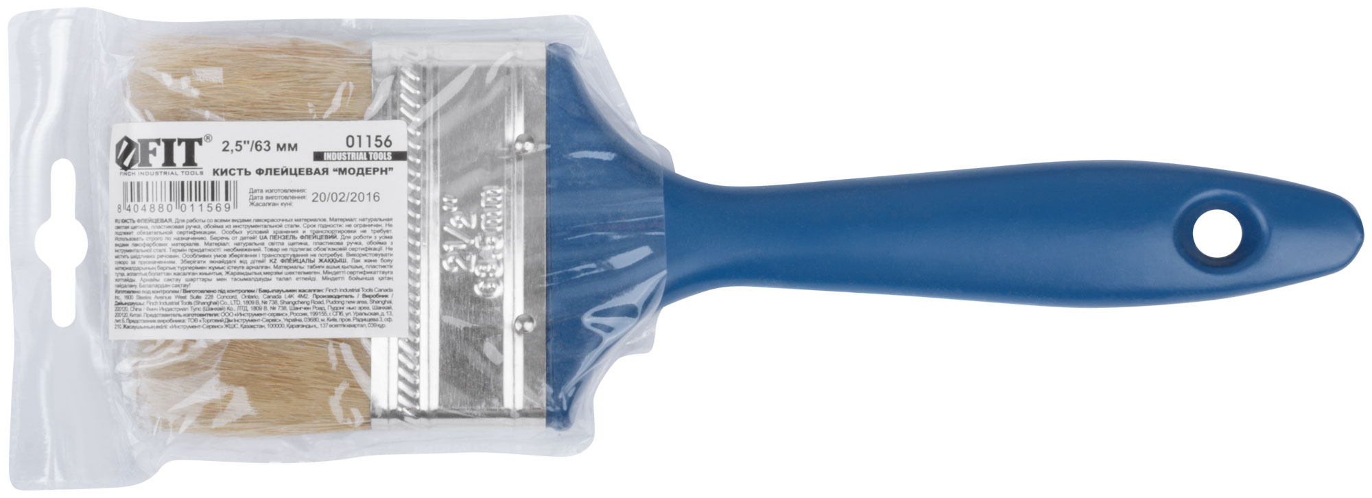Кисть флейцевая "Модерн", натур.светлая щетина, пластиковая ручка 2,5" (63 мм)