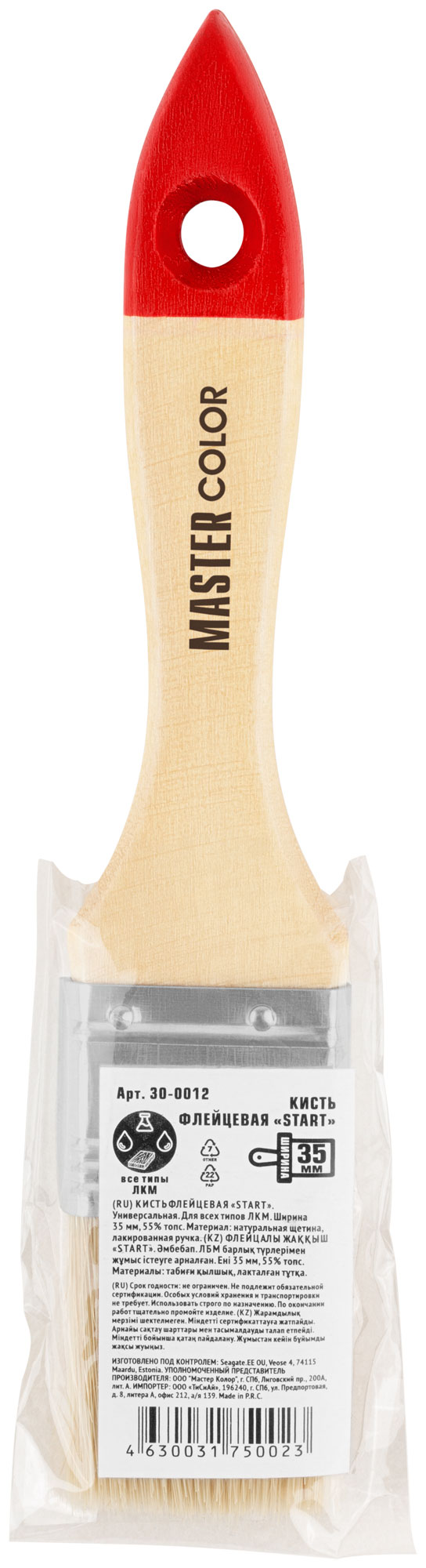 Кисть флейцевая, натур. щетина, 55% топс, лакиров.ручка, ширина 35 мм