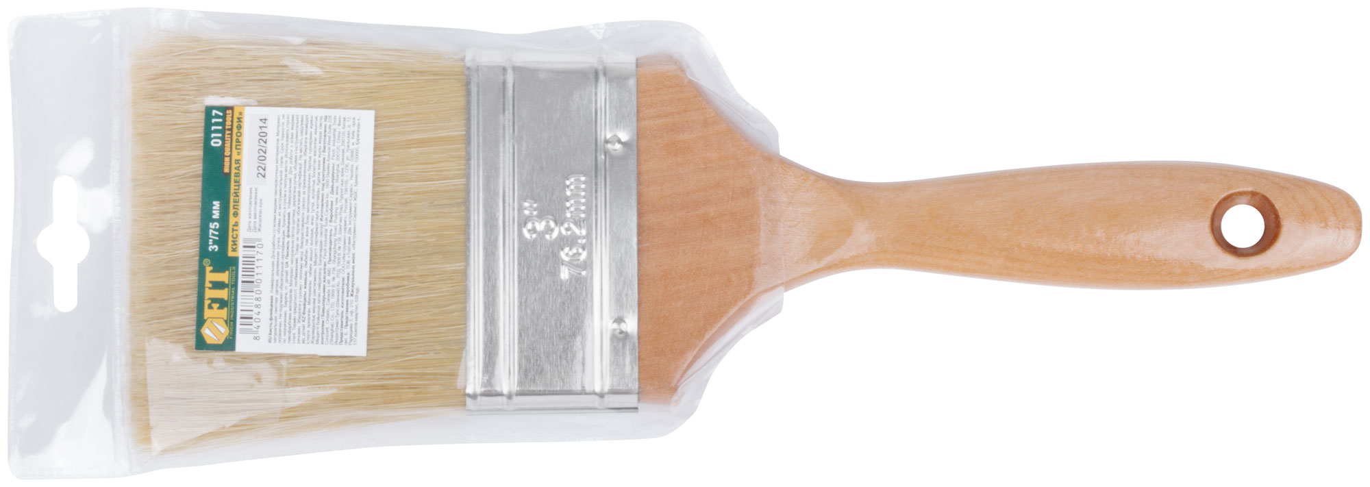 Кисть флейцевая "Профи", натур.светлая щетина, деревянная ручка 3" (75 мм)