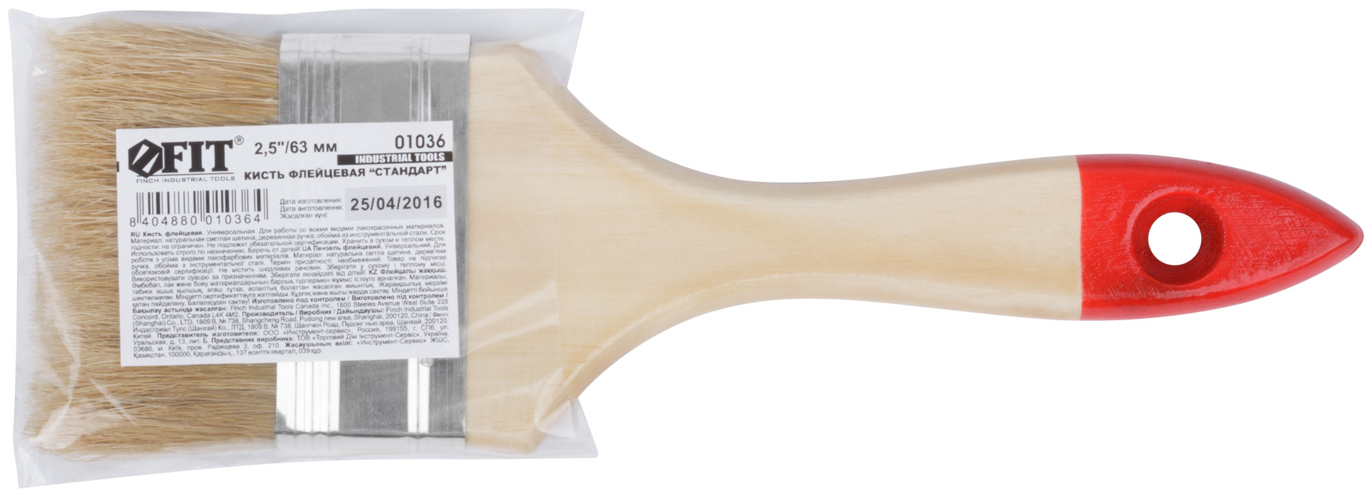 Кисть флейцевая "Стандарт", натур.светлая щетина, деревянная ручка 2,5" (63 мм)