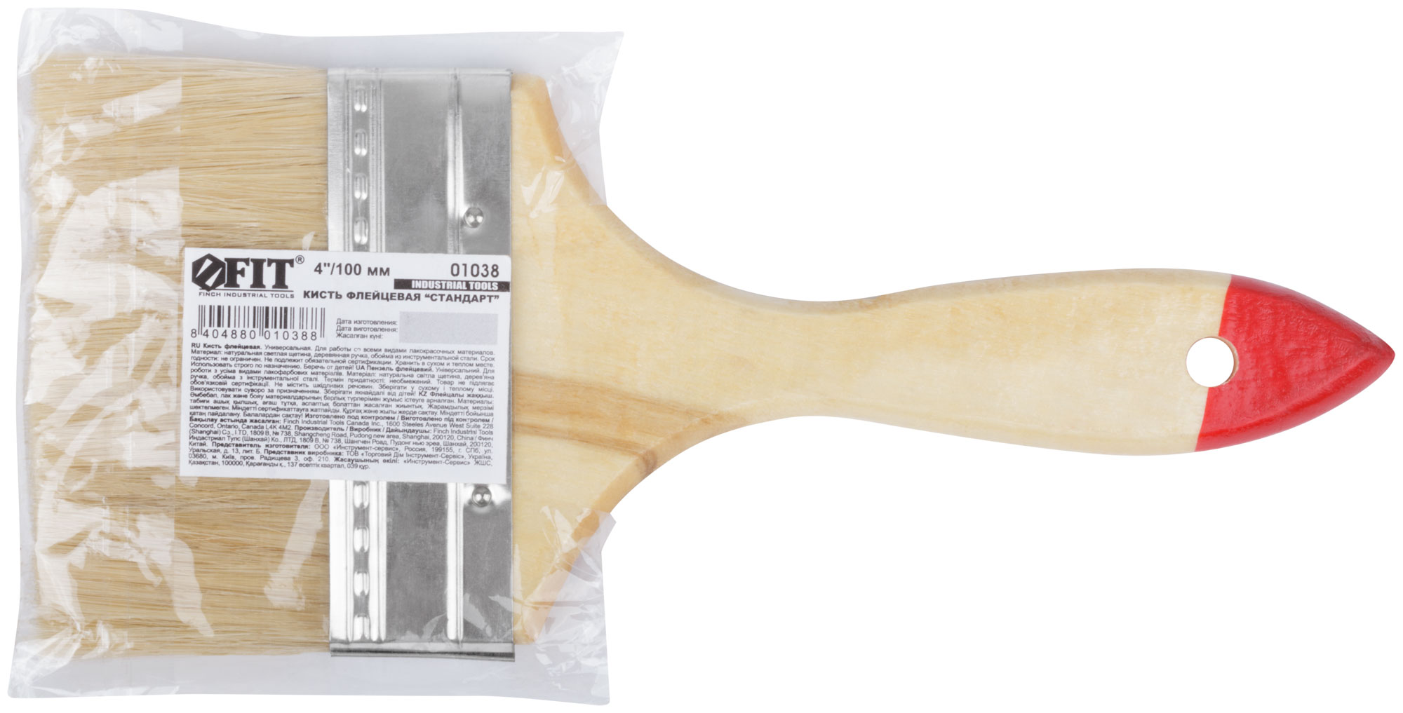 Кисть флейцевая "Стандарт", натур.светлая щетина, деревянная ручка 4" (100 мм)