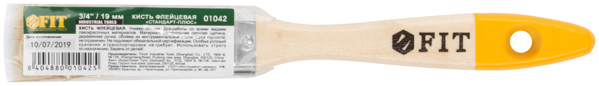 Кисть флейцевая "Стандарт-Плюс", натур.светлая щетина, деревянная ручка 3/4" (19 мм)