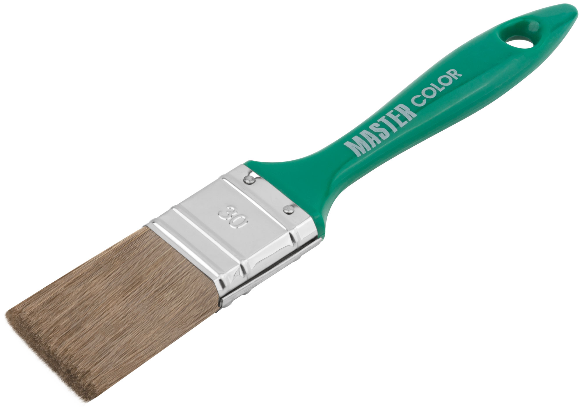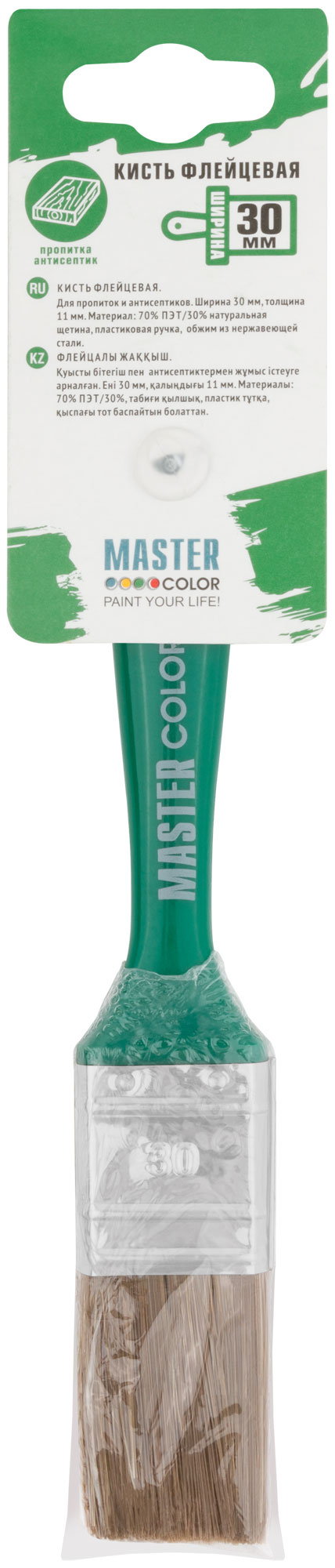 Кисть флейцевая, толщ. 11 мм, 70% ПЭT/30% натур. щетина, нерж.обжим, пласт.ручка, ширина 30 мм