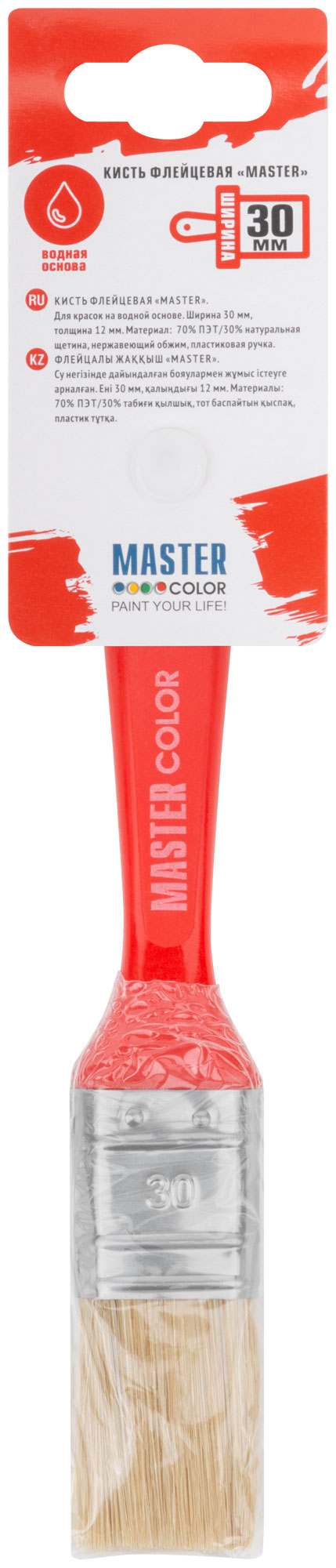 Кисть флейцевая, толщ. 12 мм, 70% ПБT/30% светлая натур. щетина, нерж.обжим, пласт. ручка, ширина 30 мм