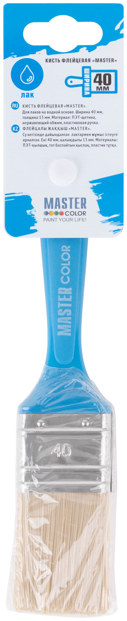 Кисть флейцевая, толщ. 13 мм, ПЭТ-щетина, нерж. обжим, пласт. ручка, ширина 40 мм