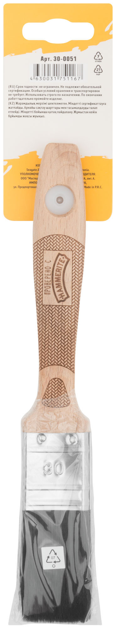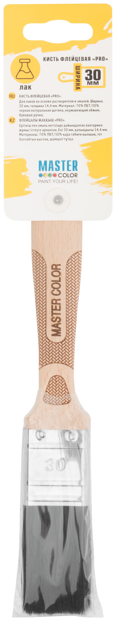 Кисть флейцевая, толщ. 14 мм, 70% ПБT/30% черная натур. щетина, нерж. обжим, ширина 30 мм