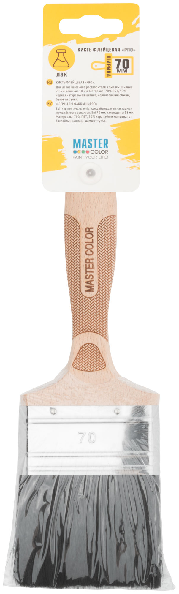 Кисть флейцевая, толщ. 16 мм, 70% ПБT/30% черная натур. щетина, нерж. обжим, ширина 70 мм