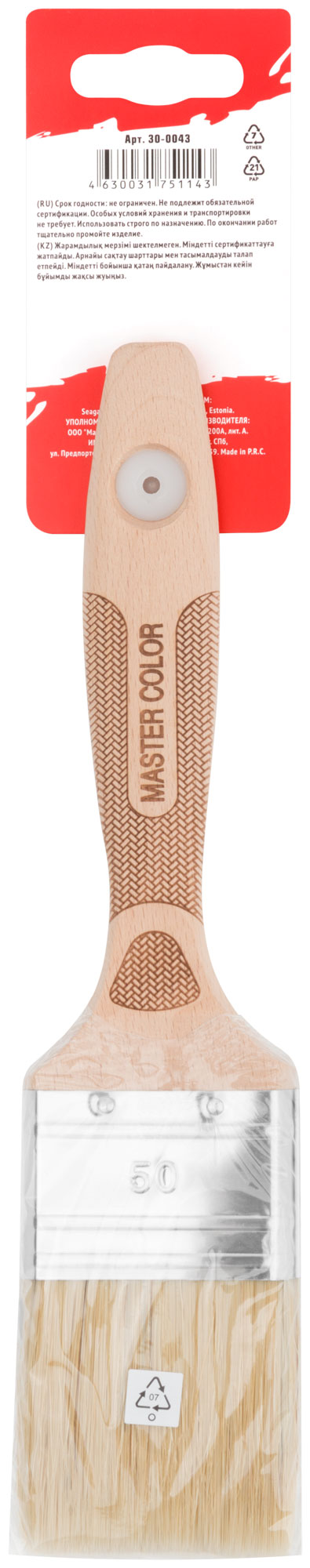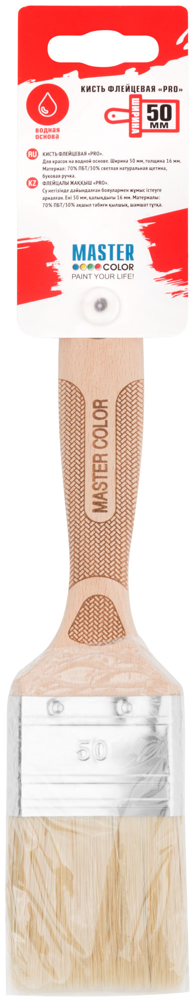 Кисть флейцевая, толщ. 16 мм, 70% ПБT/30% светлая натур. щетина, нерж. обжим, буковая ручка, ширина 50 мм