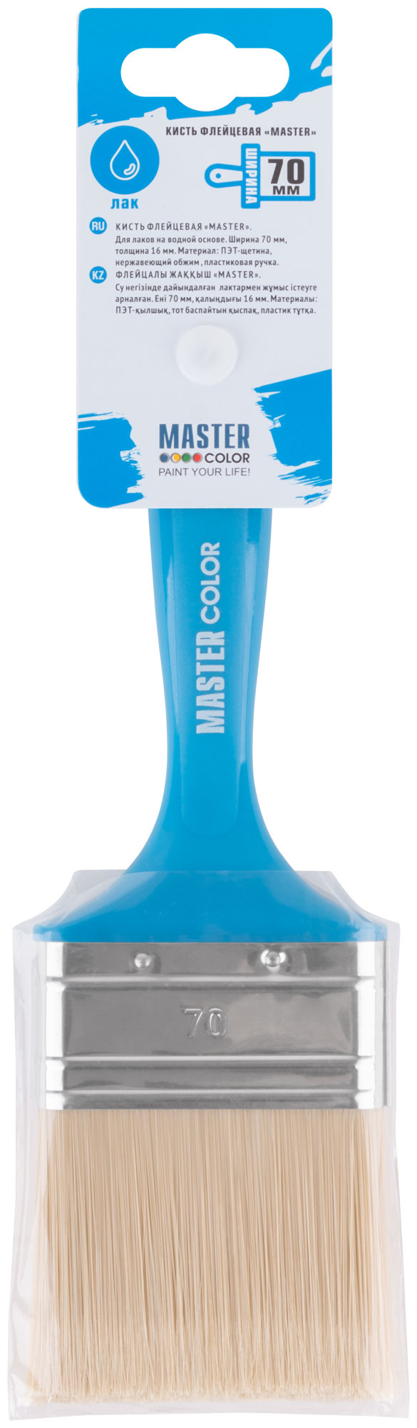 Кисть флейцевая, толщ. 16 мм, ПЭТ-щетина, нерж. обжим, пласт. ручка, ширина 70 мм