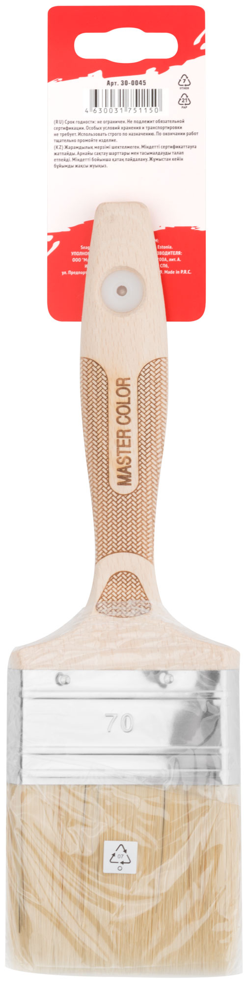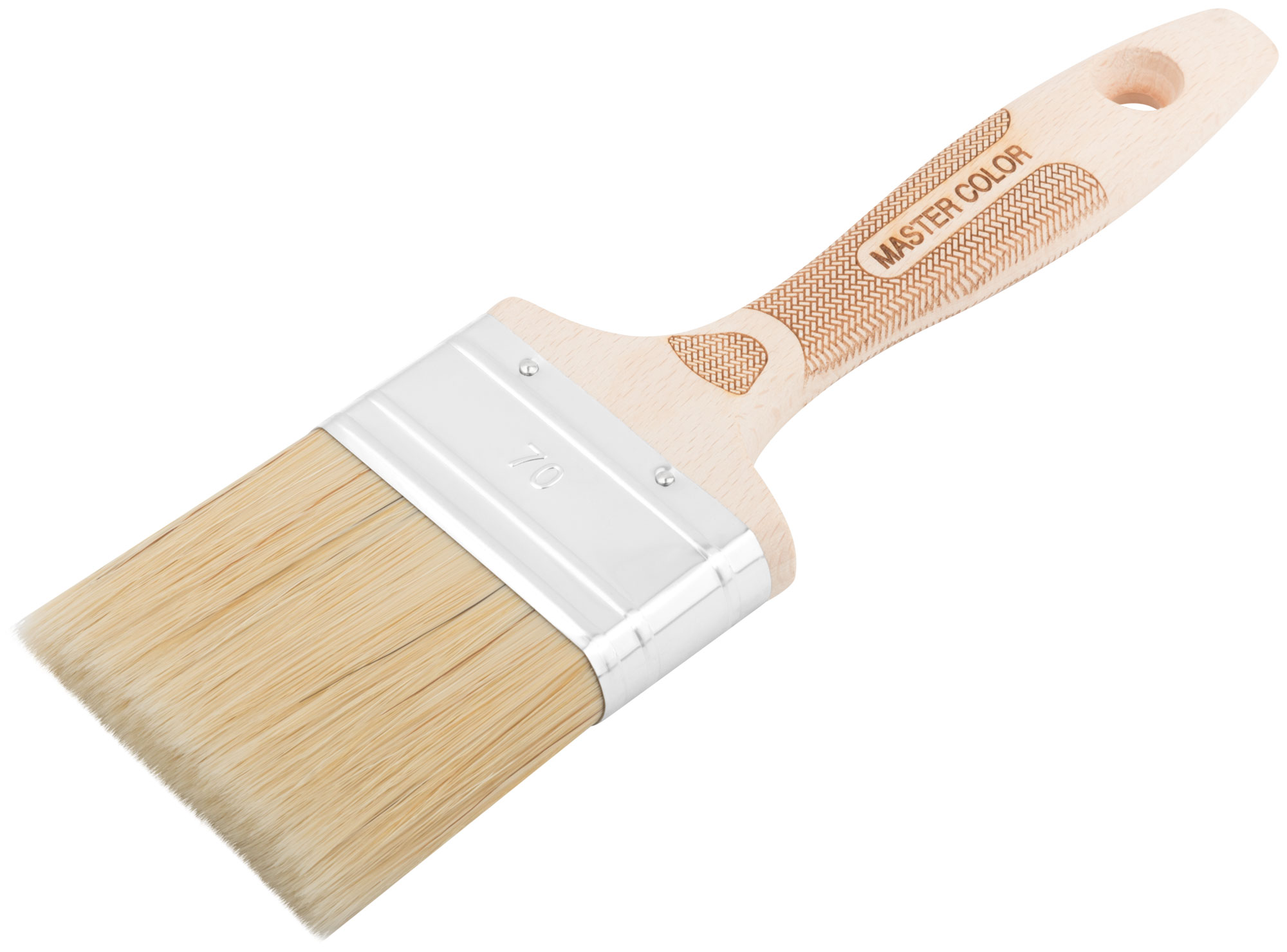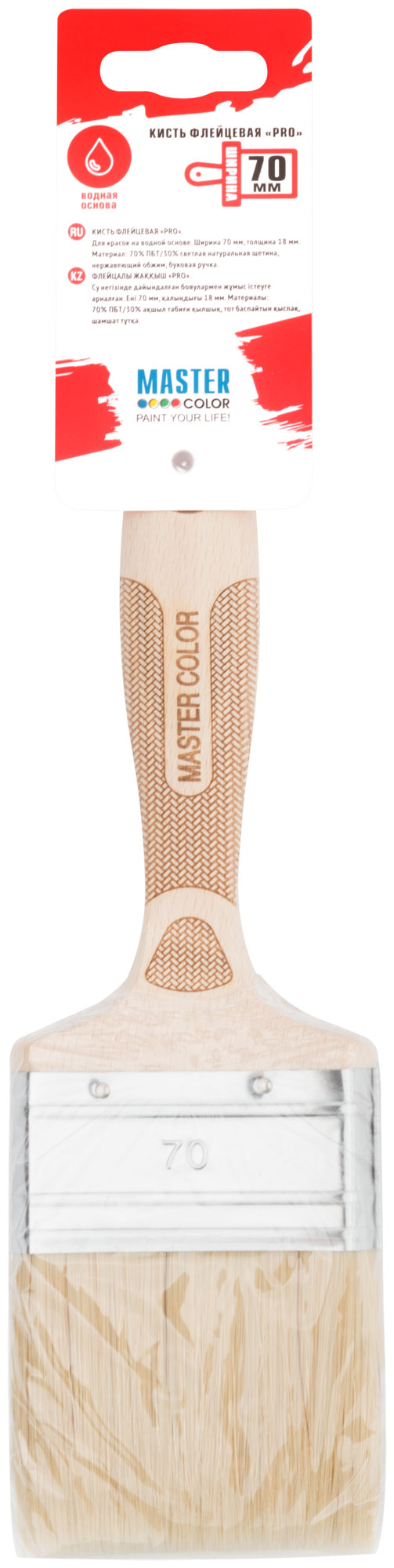Кисть флейцевая, толщ. 18 мм, 70% ПБT/30% светлая натур. щетина, нерж. обжим, буковая ручка, ширина 70 мм
