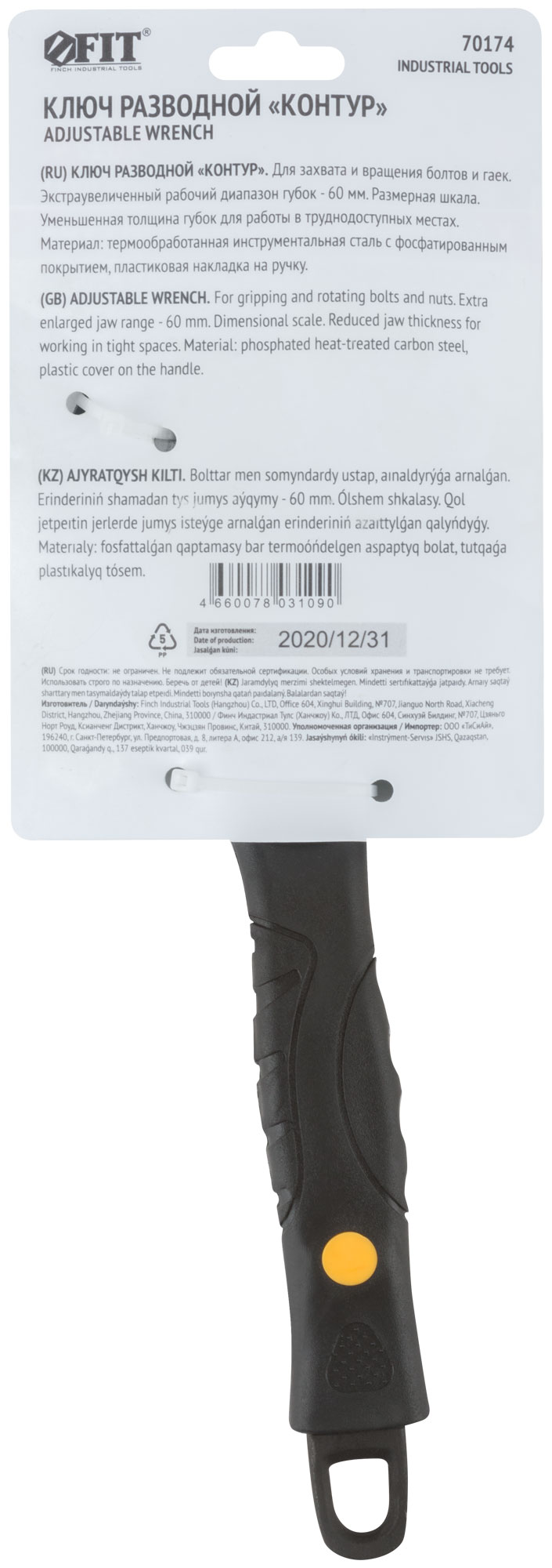 Ключ разводной "Контур", узкие губки, шкала, экстра увелич.захват, ПВХ накладка на ручку 300 мм ( 60 мм )