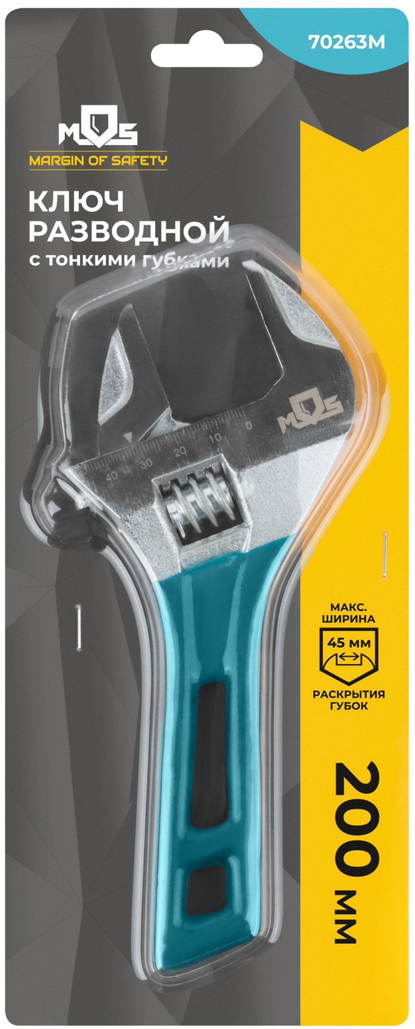 Ключ разводной с тонкими губками, пластиковая накладка на ручку, 200 мм ( 45 мм )