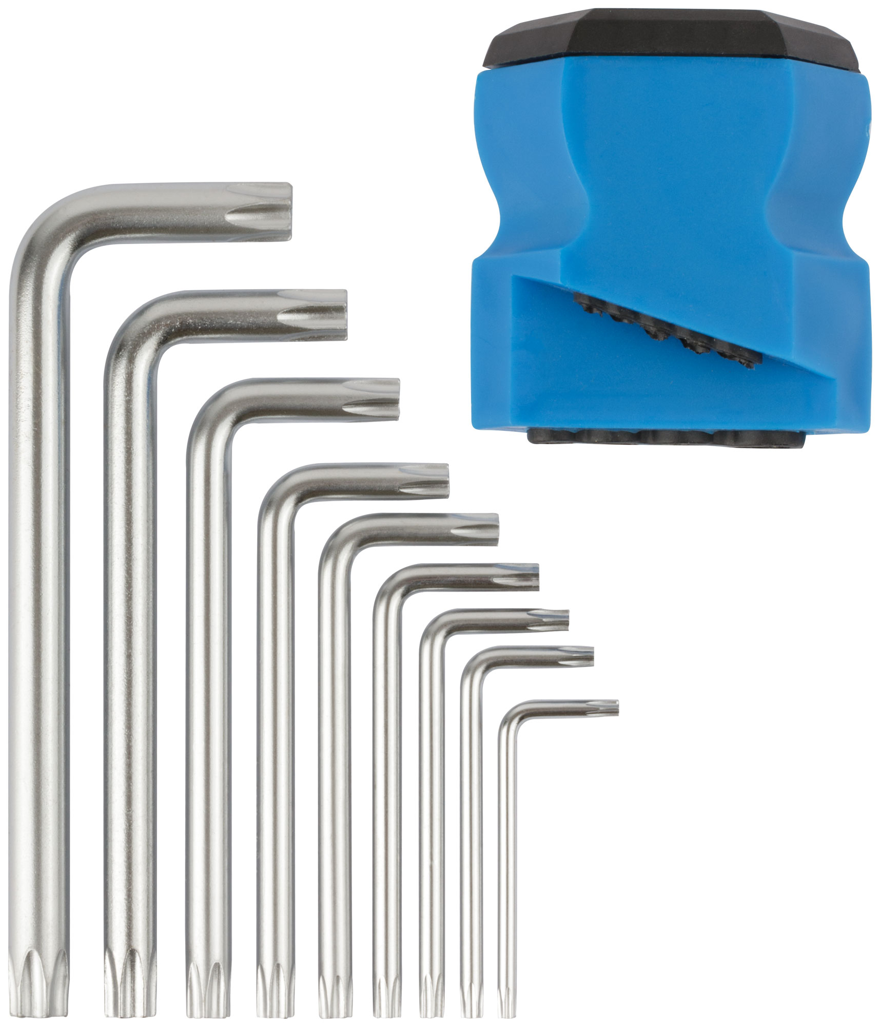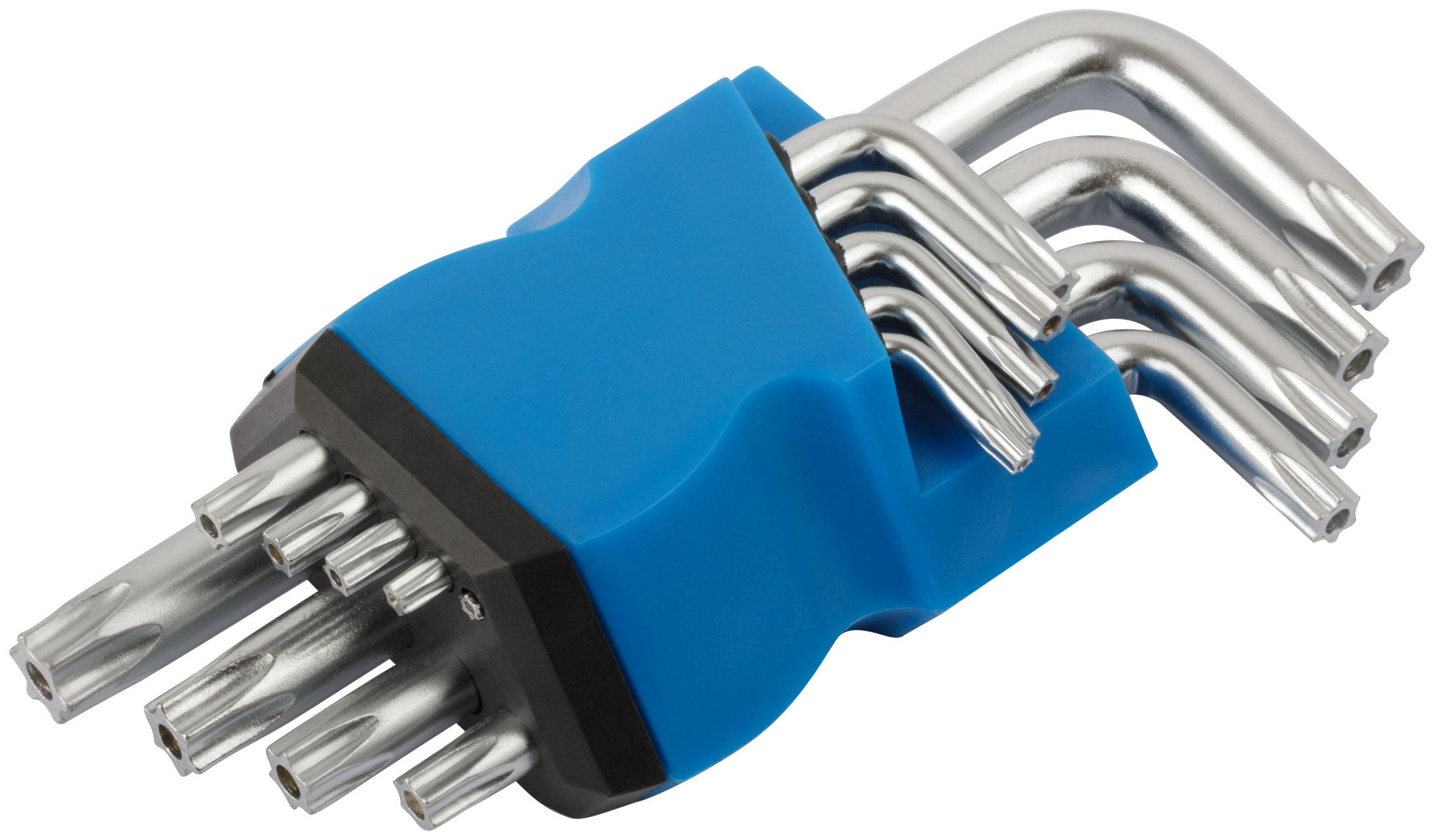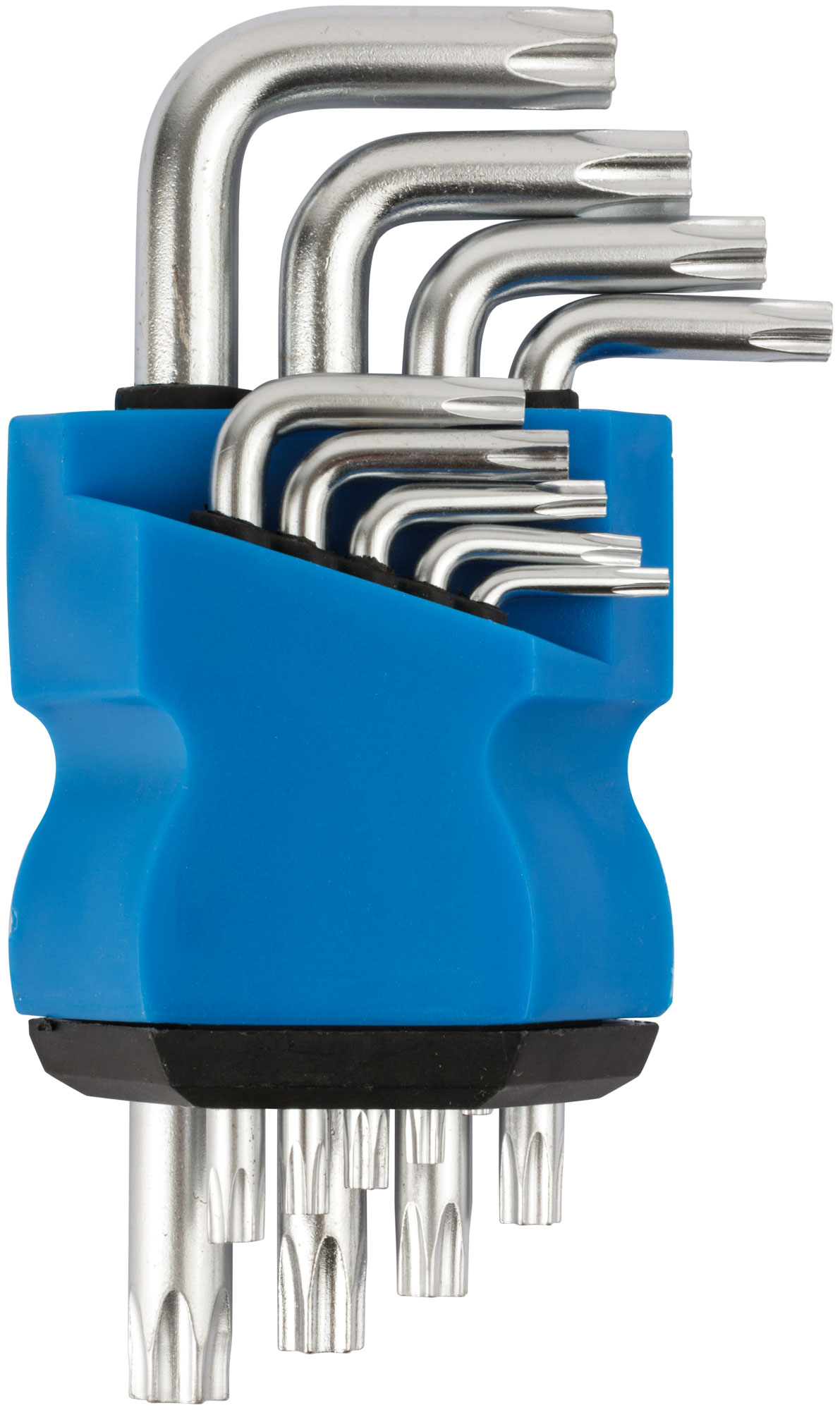 Набор ключей "TORX" 9 шт. (T10, Т15, Т20, Т25, Т27, Т30, Т40, Т45, T50). Для работы с крепежными элементами с профилем Torx (звездочка). Материал: термообработанная инструментальная сталь с хромированным покрытием. Упаковка: блистер.