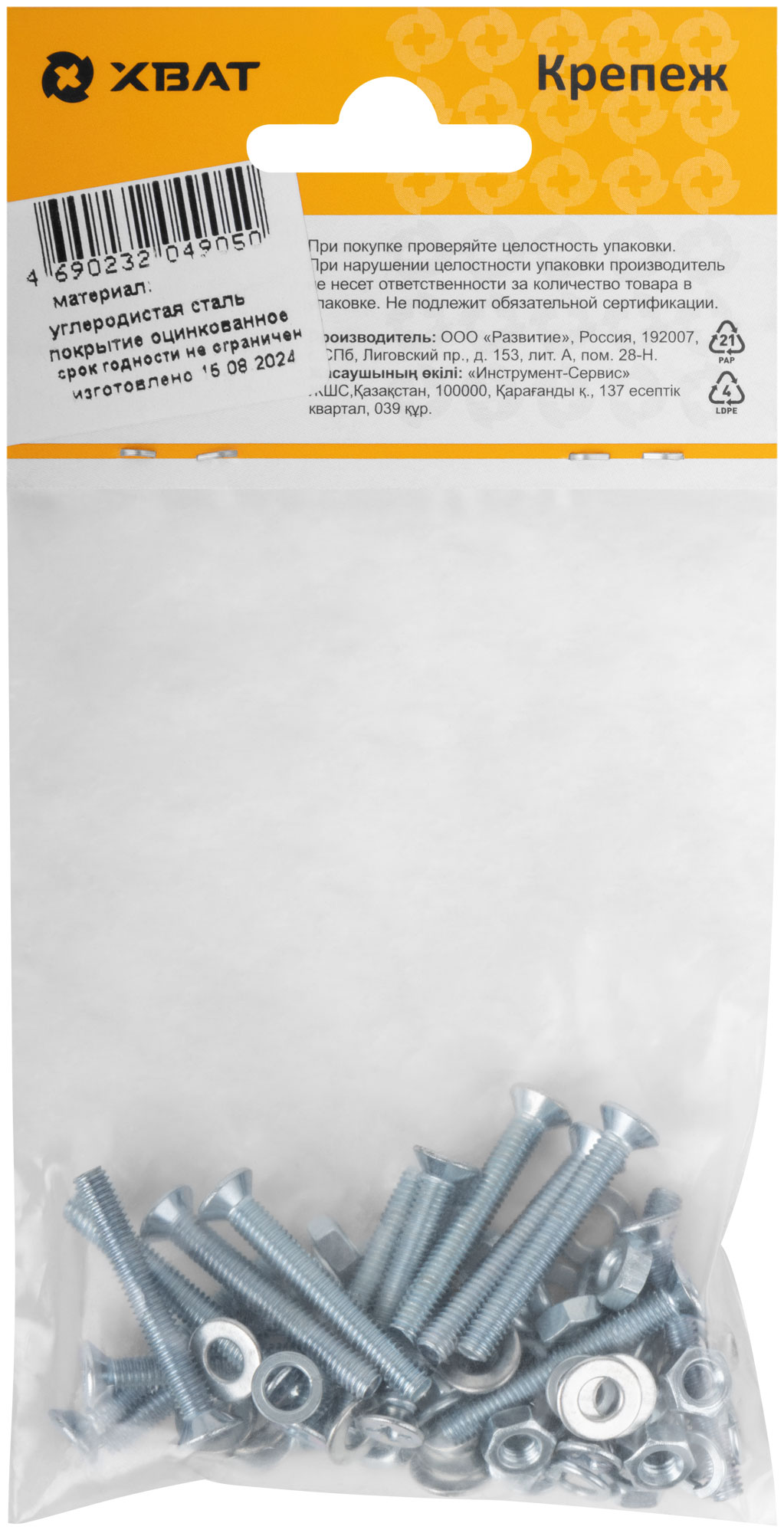 Комплект метрического крепежа состоит из: винт DIN965, гайка DIN934, шайба DIN125, шайба гроверная DIN127. Рекомендуются для крепления и соединения узлов и деталей в машиностроении, строительстве. Материал: конструкционная оцинкованная сталь.