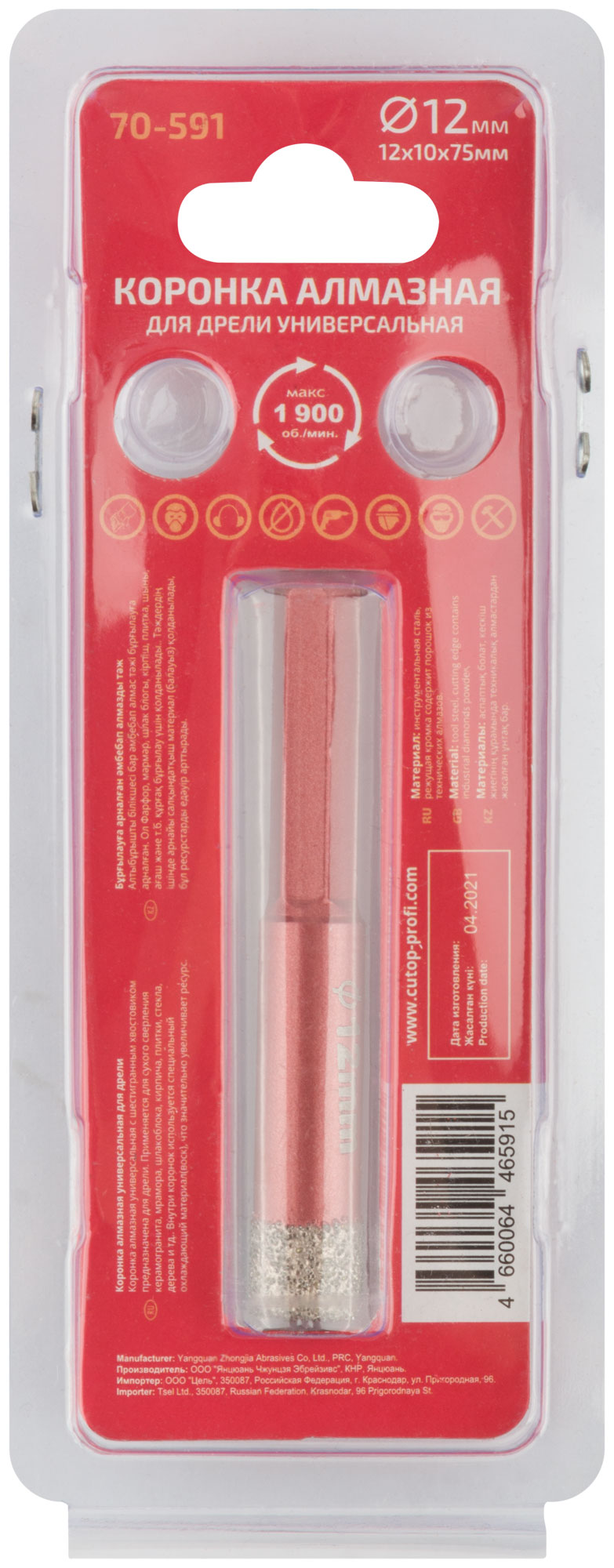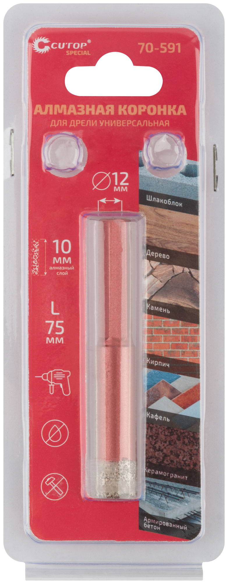Коронка алмазная универсальная для дрели CUTOP Special 12x10x75мм