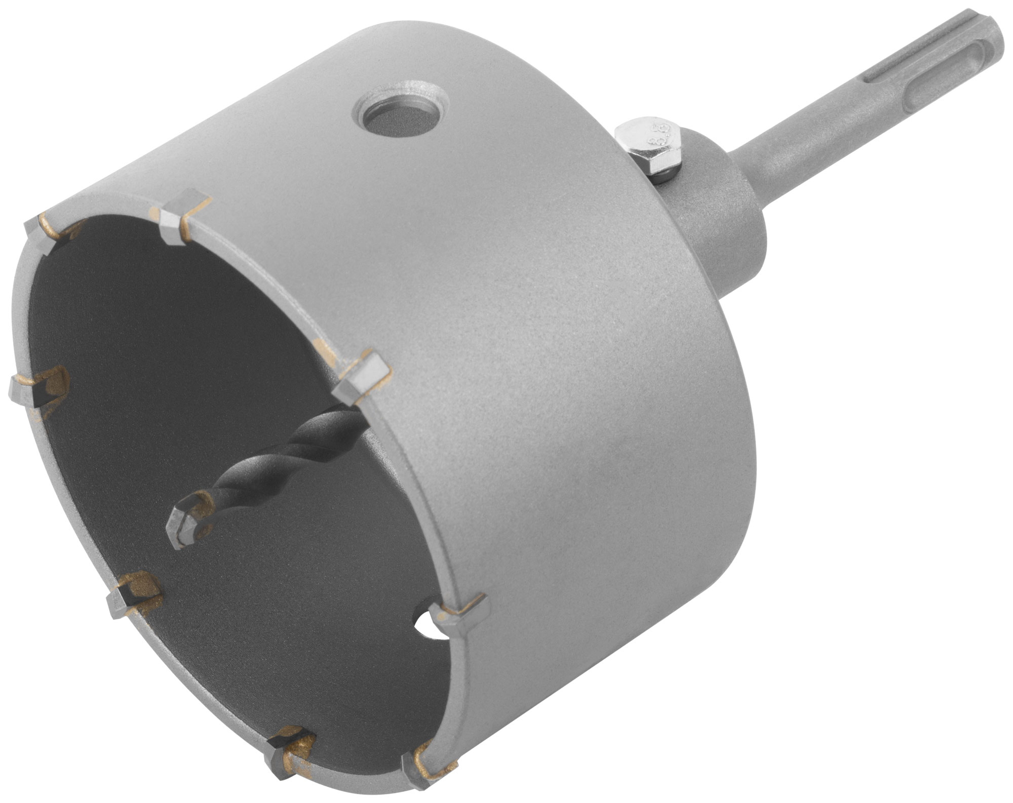 Предназначена для ударного сверления в кирпиче, камне, бетоне, граните. Максимальная глубина сверления — 50 мм. Сверло для центрования с твердосплавным наконечником. Посадочное отверстие коронки — М22. Режущие элементы представляют собой твердосплавные резцы, изготовленные с добавлением карбида вольфрама. Тип хвостовика: SDS-Plus. Материал: инструментальная сталь.
