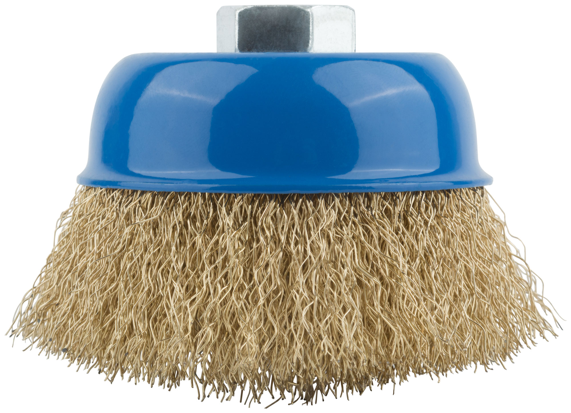 Корщетка, тип "чашка", гайка М14, стальная латунированная волнистая проволока 75 мм