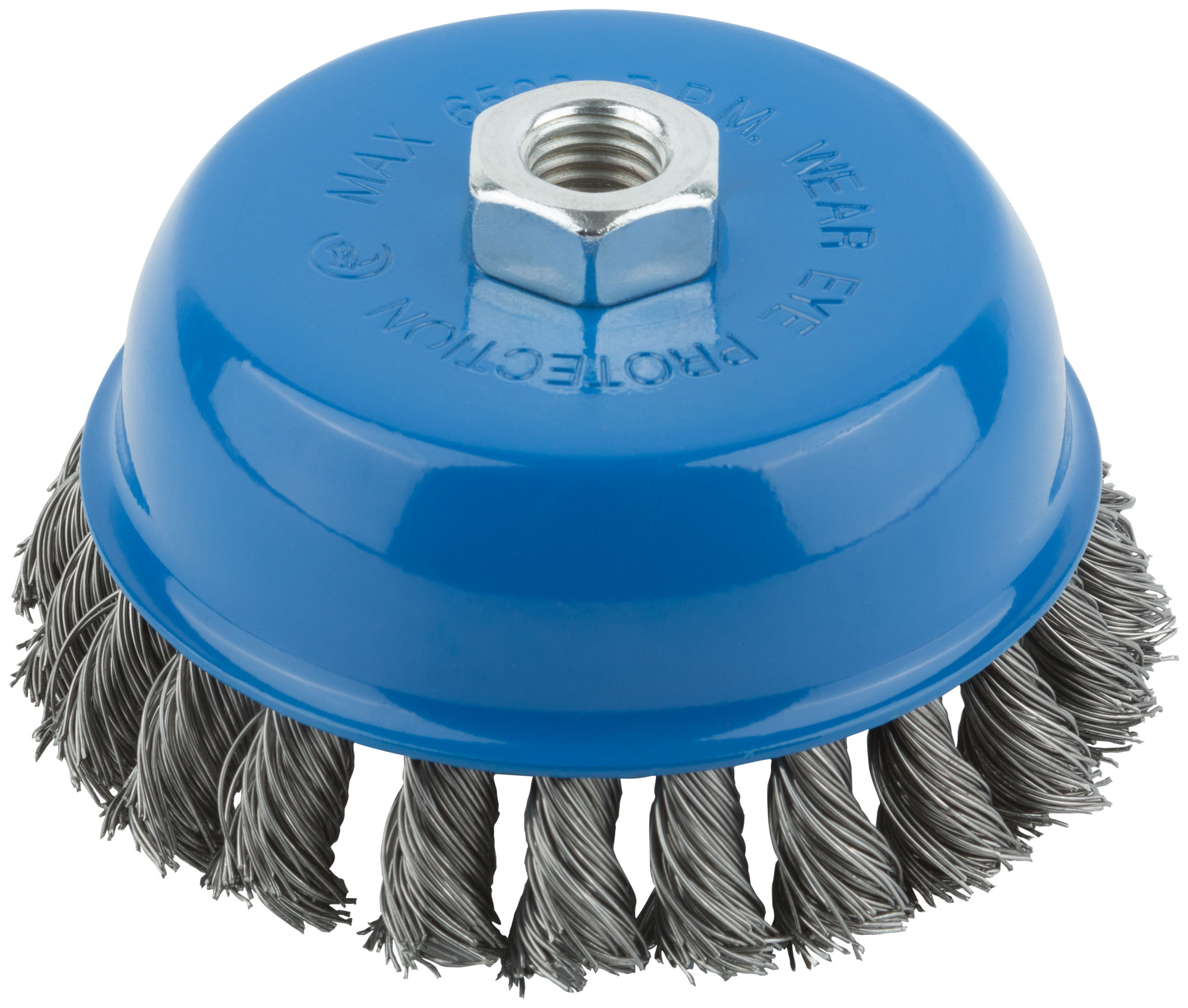 Тип «чашка». Для УШМ. Для очистки поверхностей от краски и ржавчины. Гайка М14. Витая проволока. Материал: инструментальная сталь. Упаковка: картонная коробка.