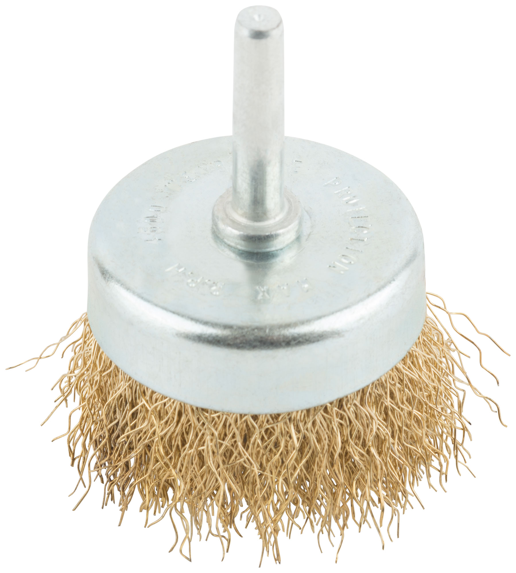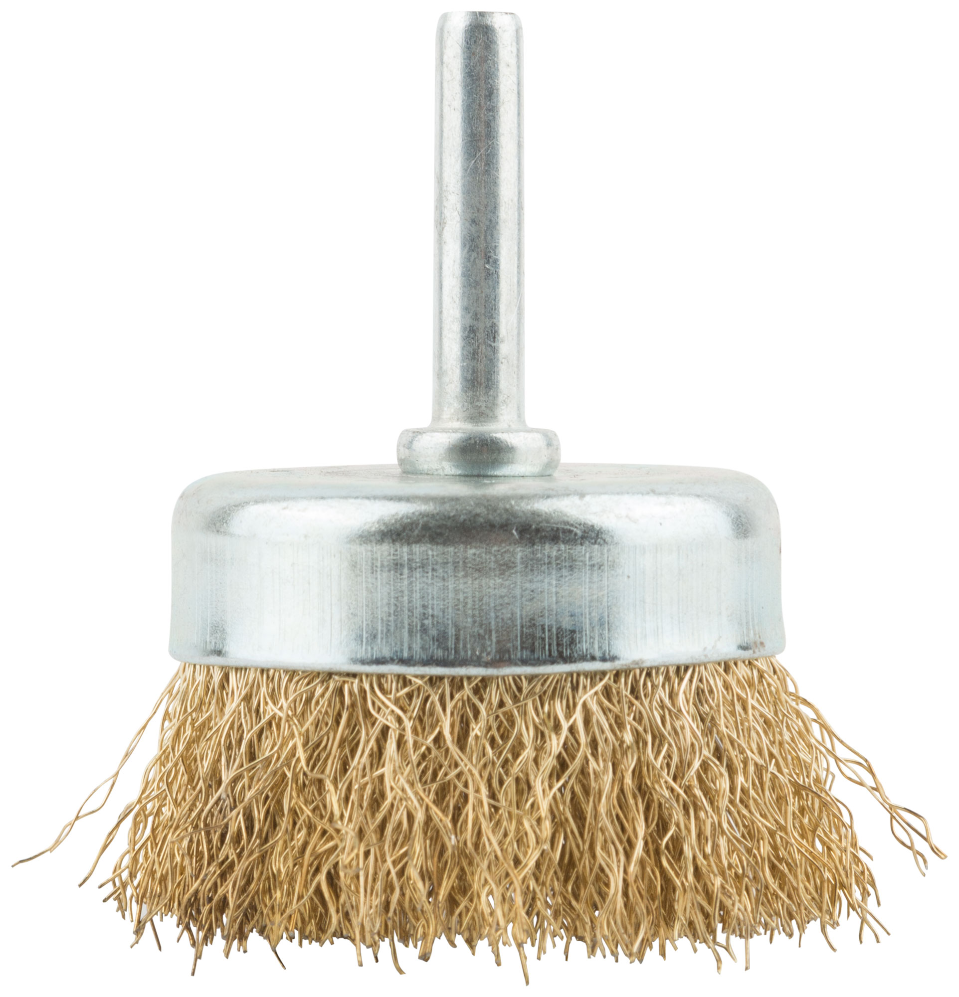Корщетка, тип "чашка", со штифтом, стальная латунированная волнистая проволока 50 мм