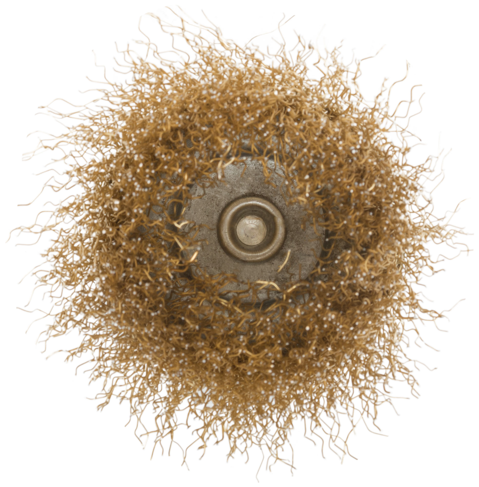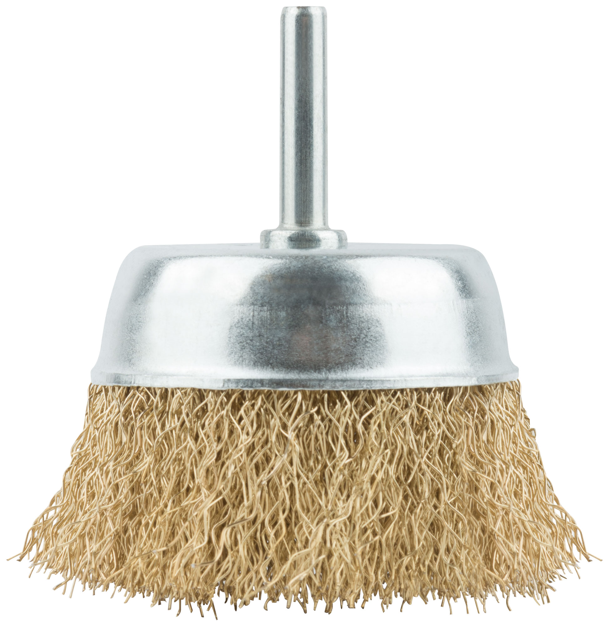 Корщетка, тип "чашка", со штифтом, стальная латунированная волнистая проволока 75 мм