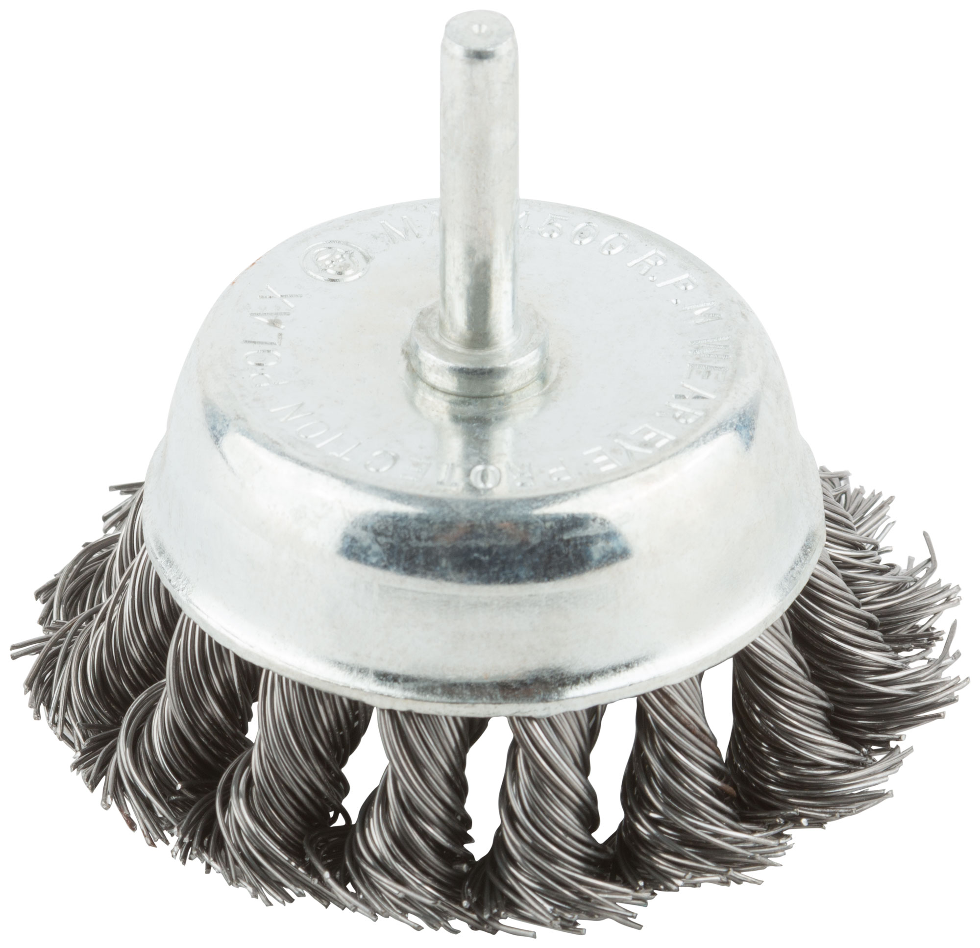 Корщетка, тип "чашка", со штифтом, стальная витая проволока 75 мм
