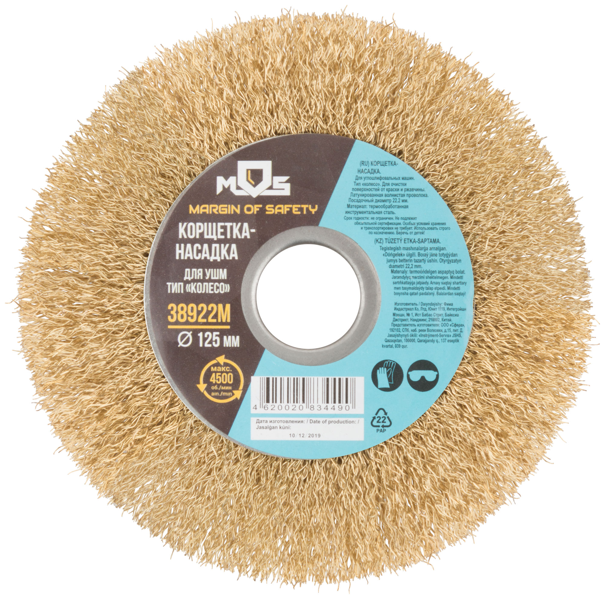 Корщетка, тип "колесо", посадочный диаметр 22,2 мм, стальная латунированная волнистая проволока 125 мм