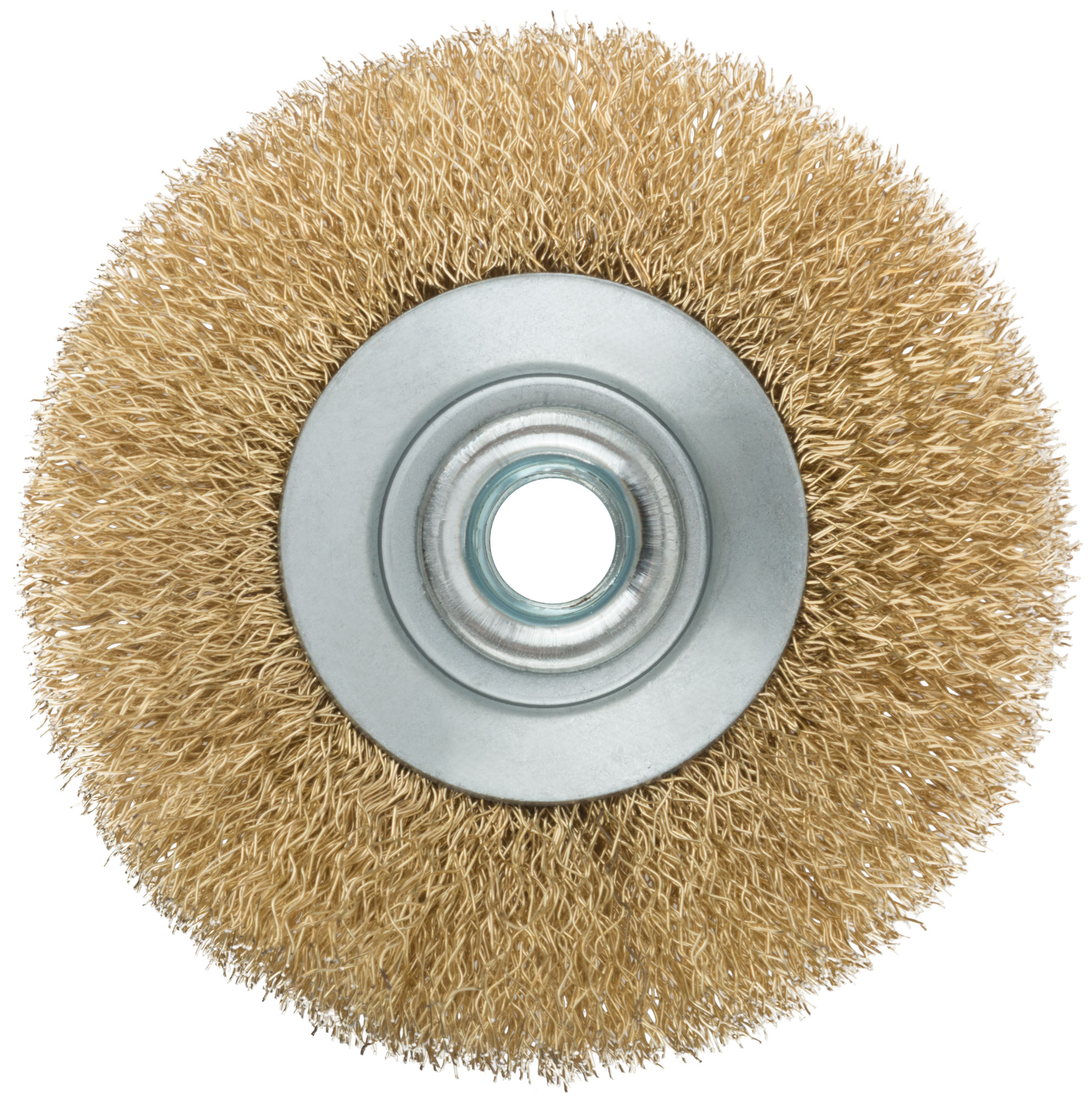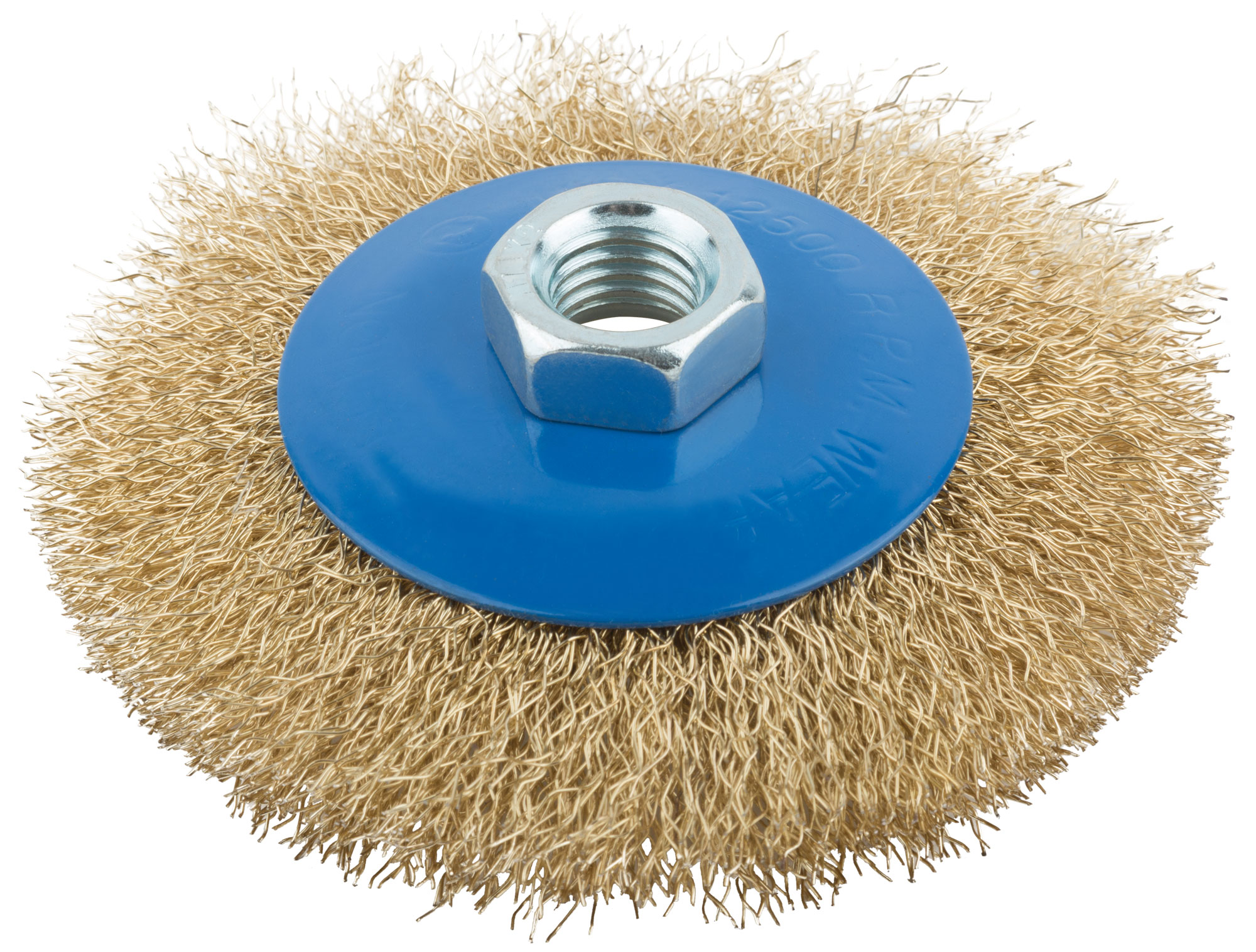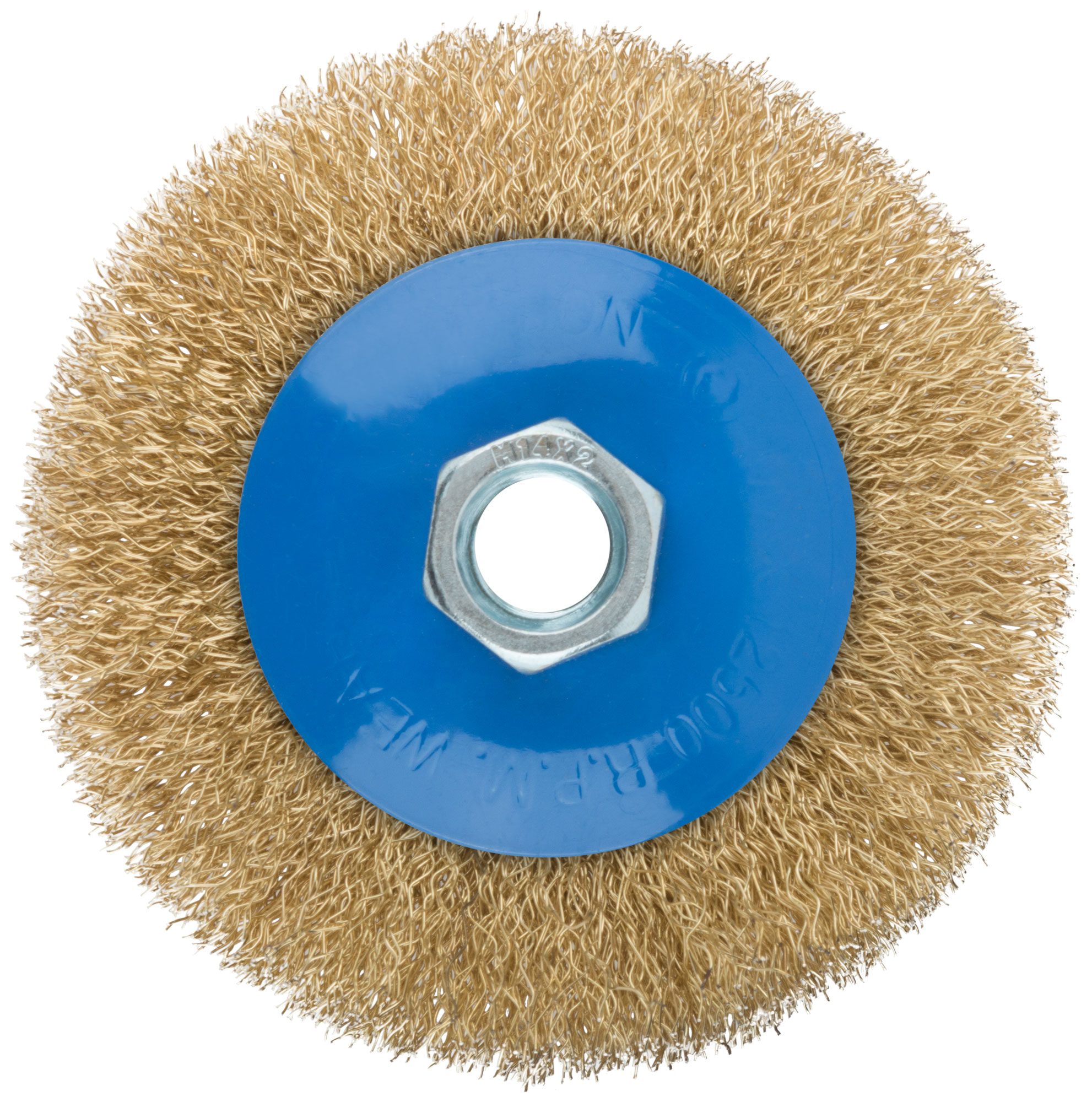 Корщетка, тип "колесо" с наклоном, гайка М14, стальная волнистая латунированная проволока 100 мм