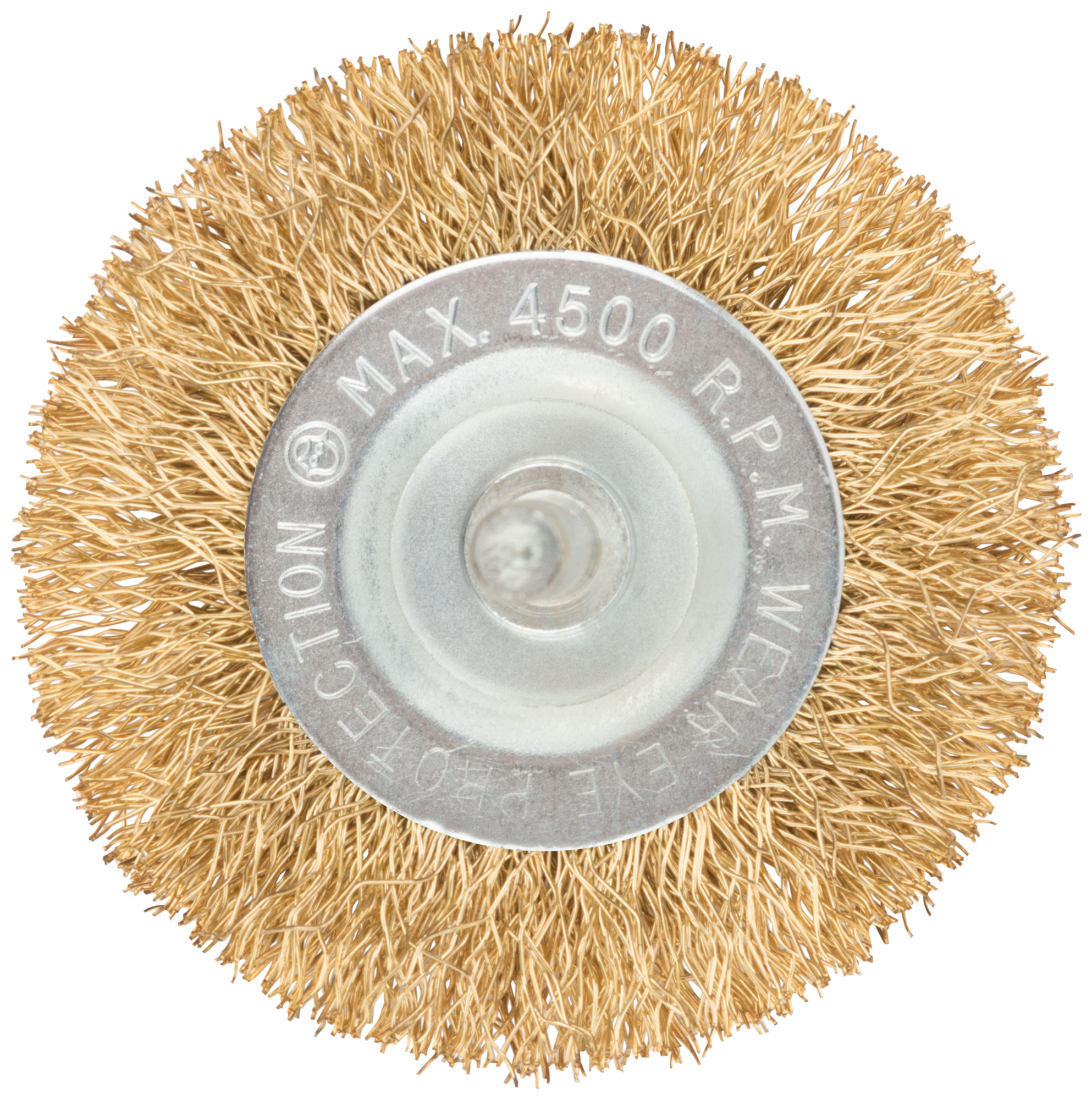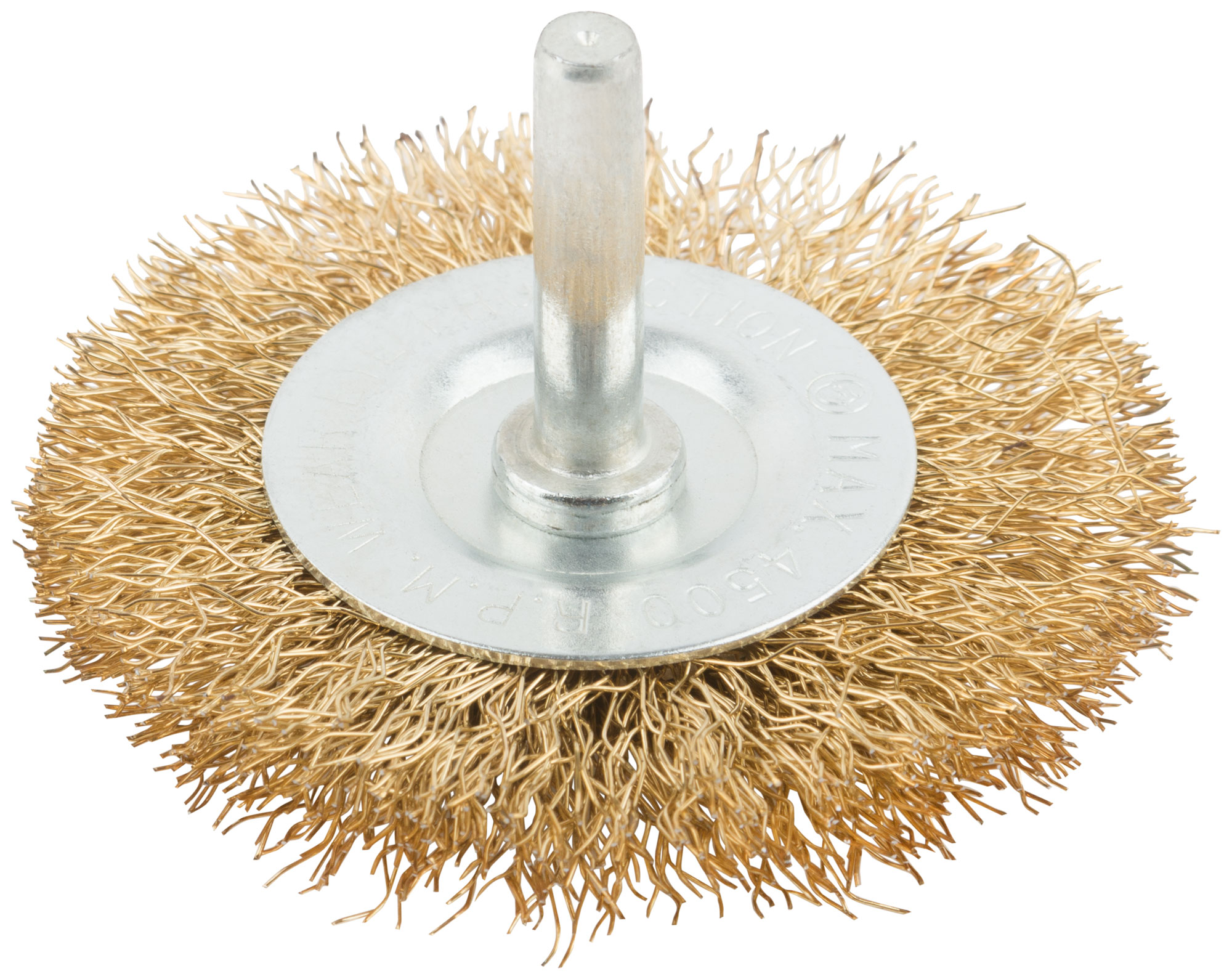 Корщетка, тип "колесо", со штифтом, стальная латунированная волнистая проволока 63 мм