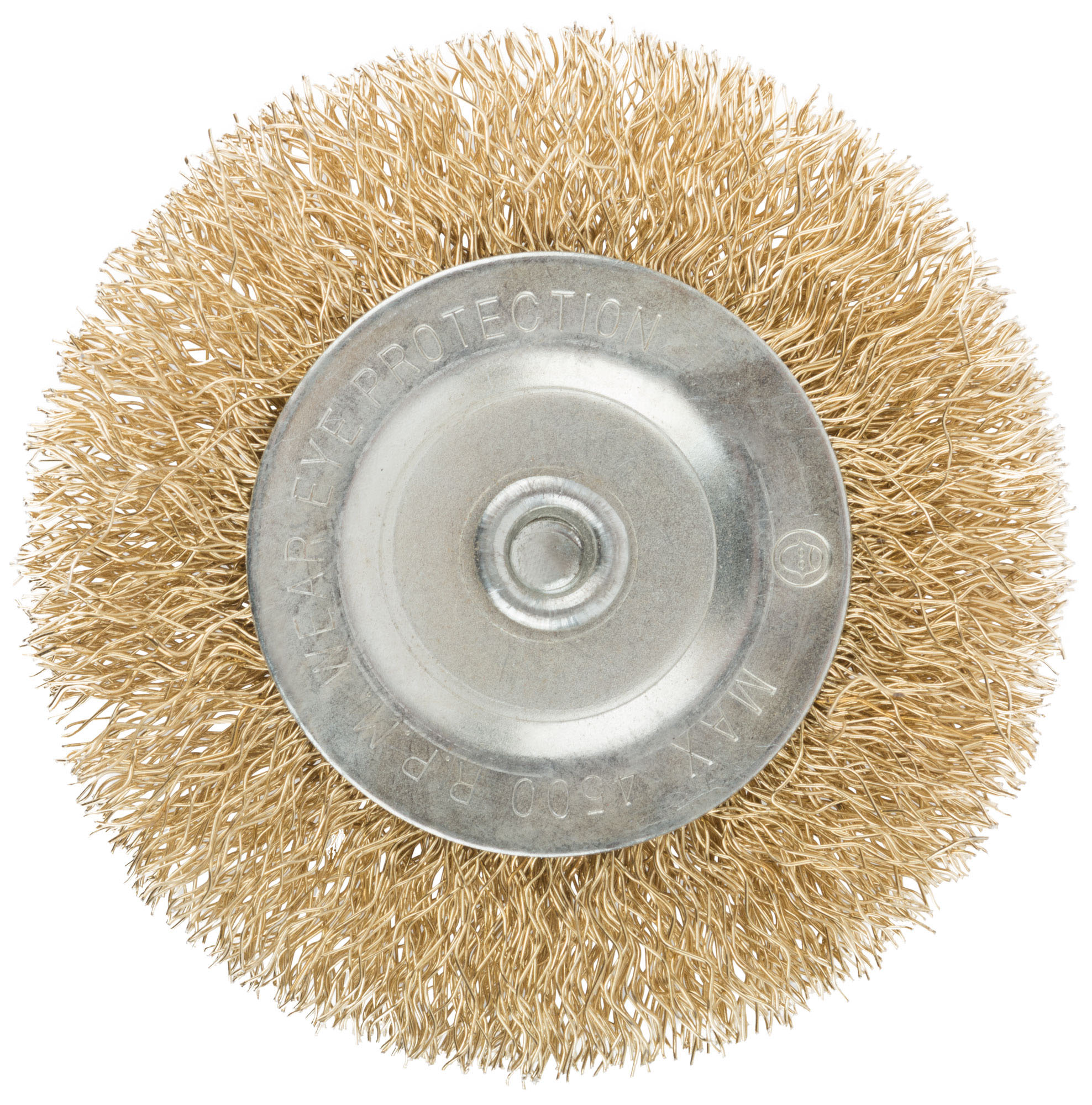 Корщетка, тип "колесо", со штифтом, стальная латунированная волнистая проволока 75 мм