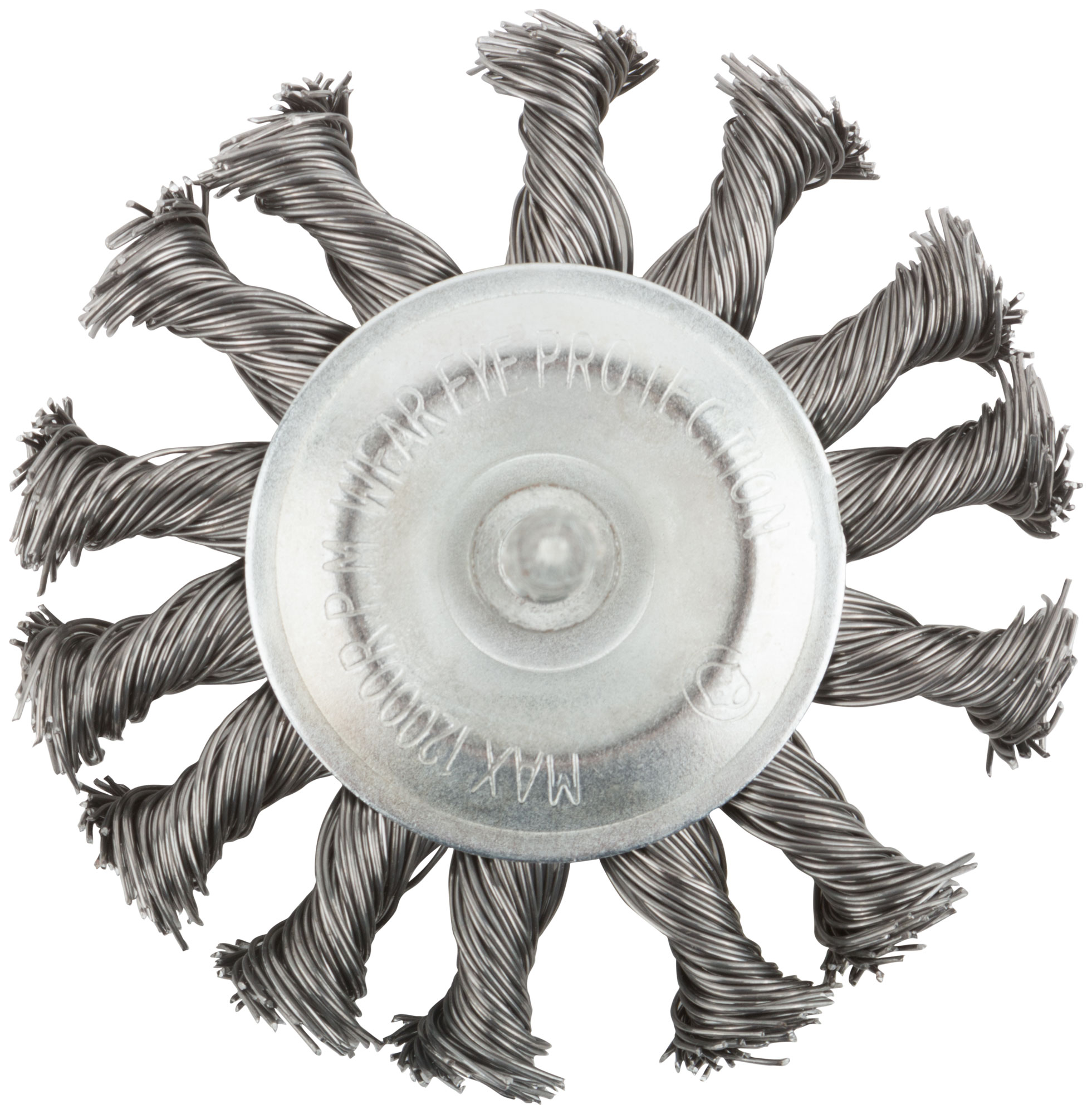 Тип «колесо». Для очистки поверхностей от краски и ржавчины. Для дрели. Со шпилькой. Витая проволока. Материал: инструментальная сталь.