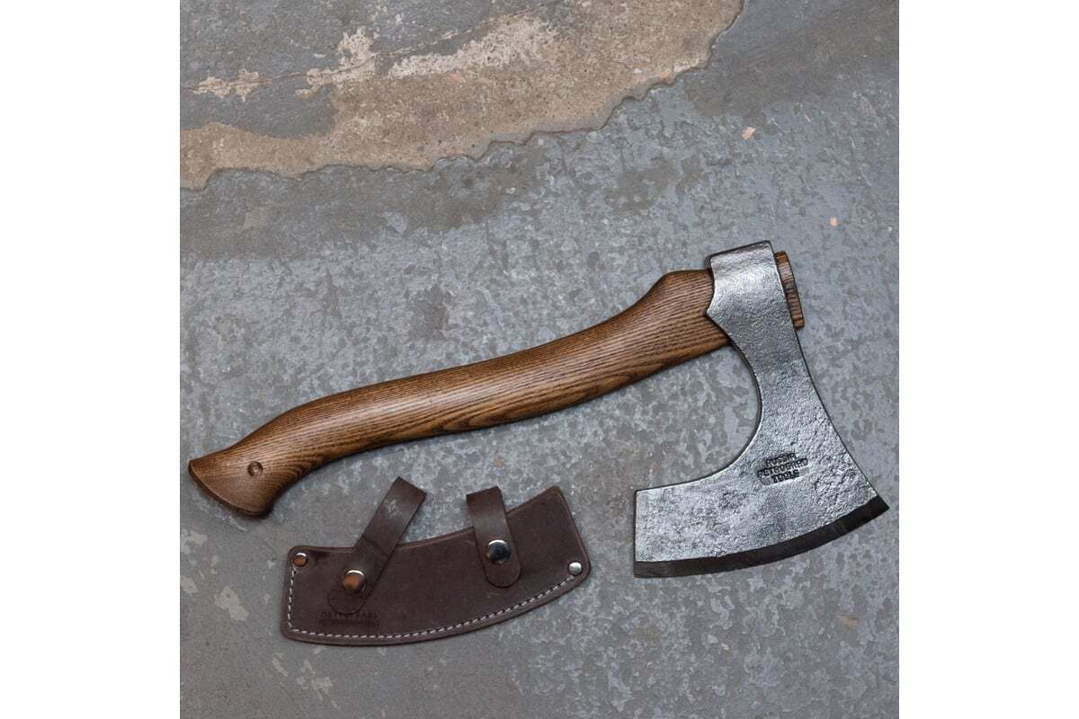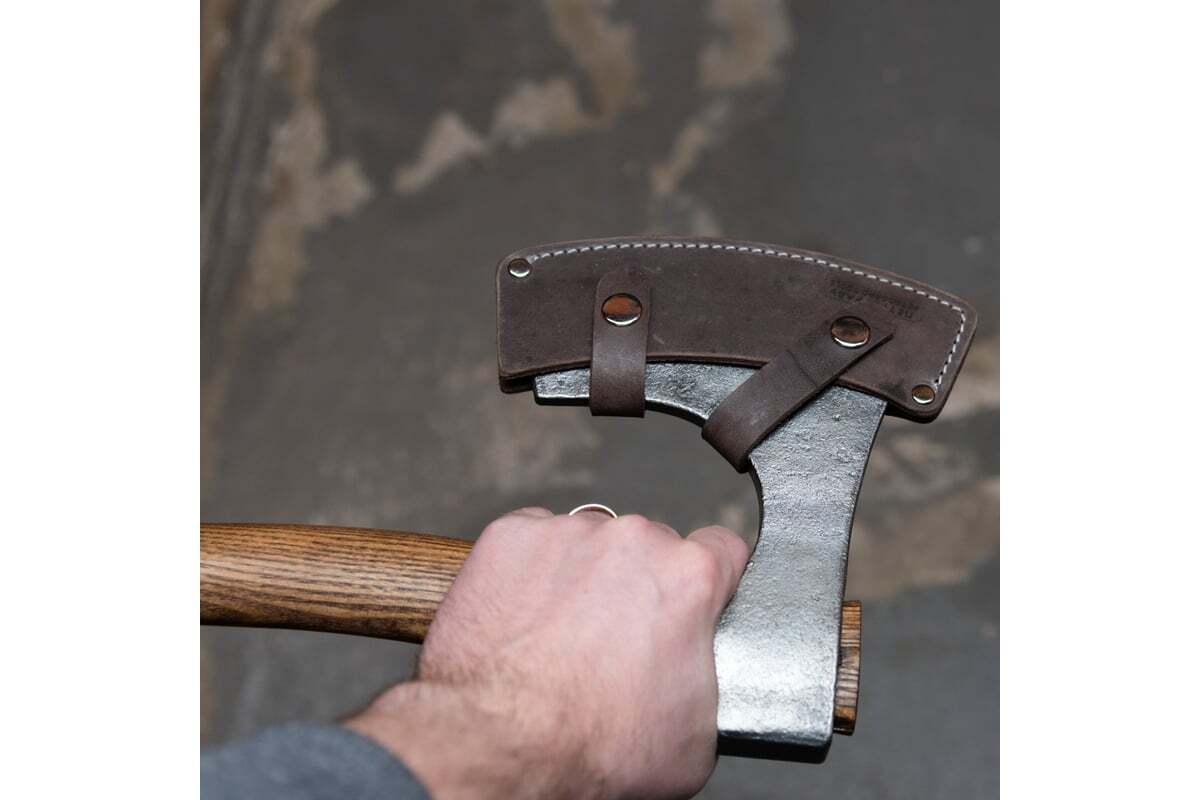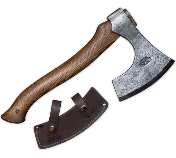 Все топоры комплектуются кожаным чехлами для защиты лезвия. Топор прекрасно сбалансирован и подходит для выполнения различных работ. Пригодится в походе, для небольших плотницких и столярных работ и просто как универсальный топор.