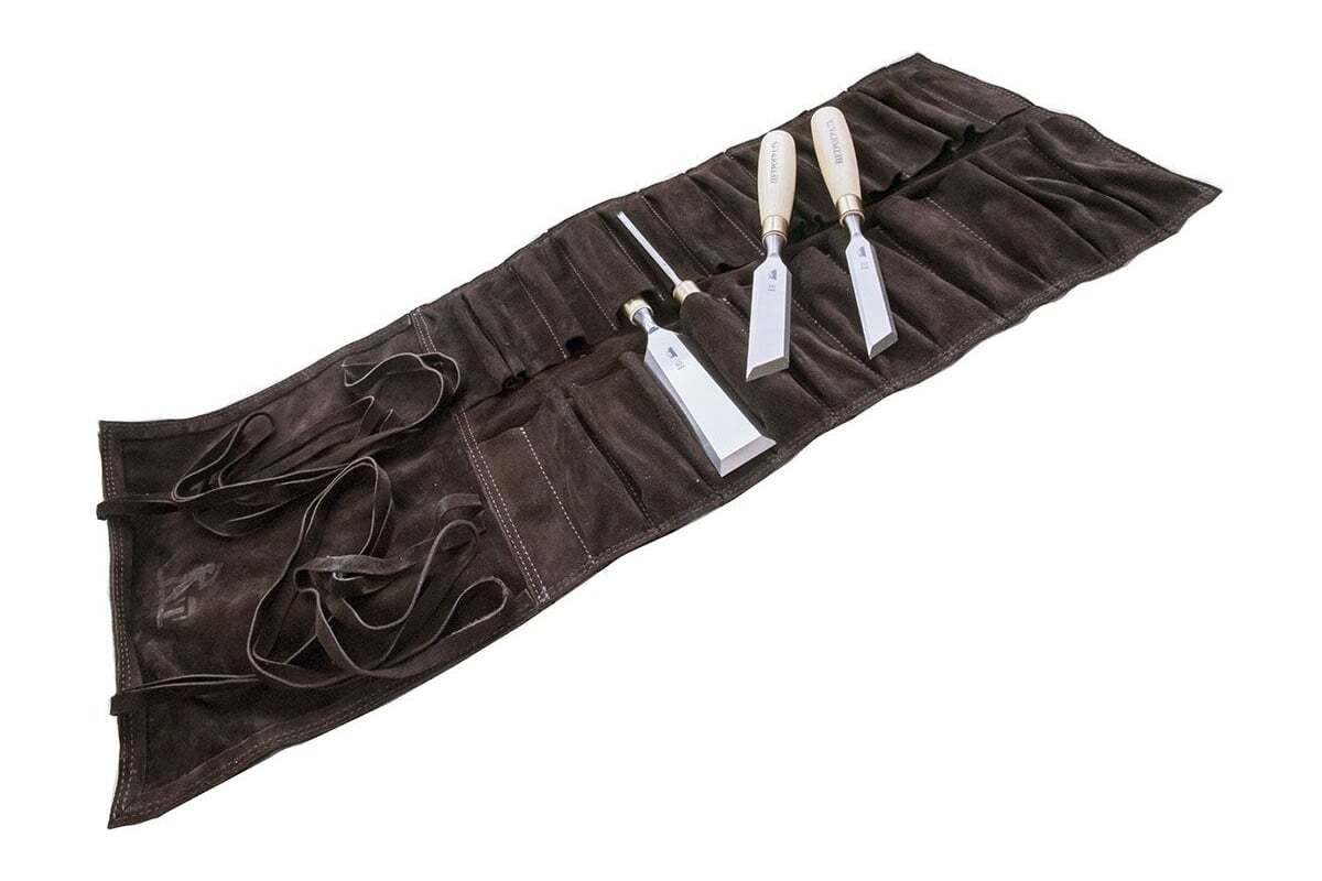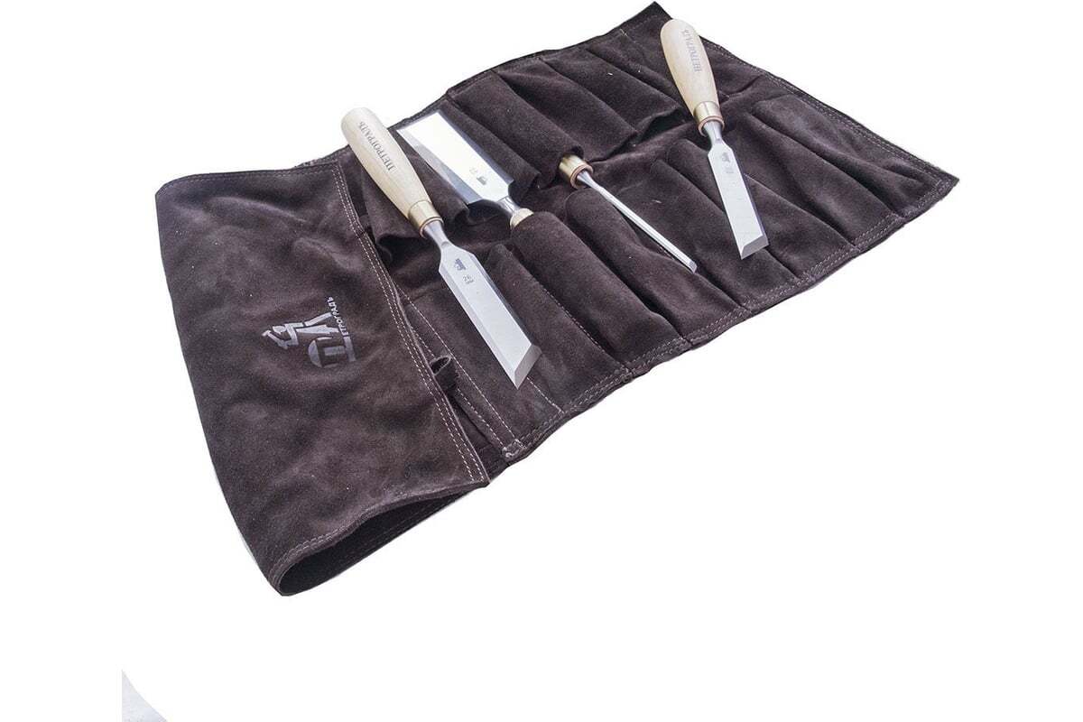 Кожаная сумка-скрутка ПЕТРОГРАДЪ 24 кармана М00015995 предназначена для хранения резчицких и столярных стамесок с диаметром рукояти не более 35 мм и общей длиной не более 260 мм.