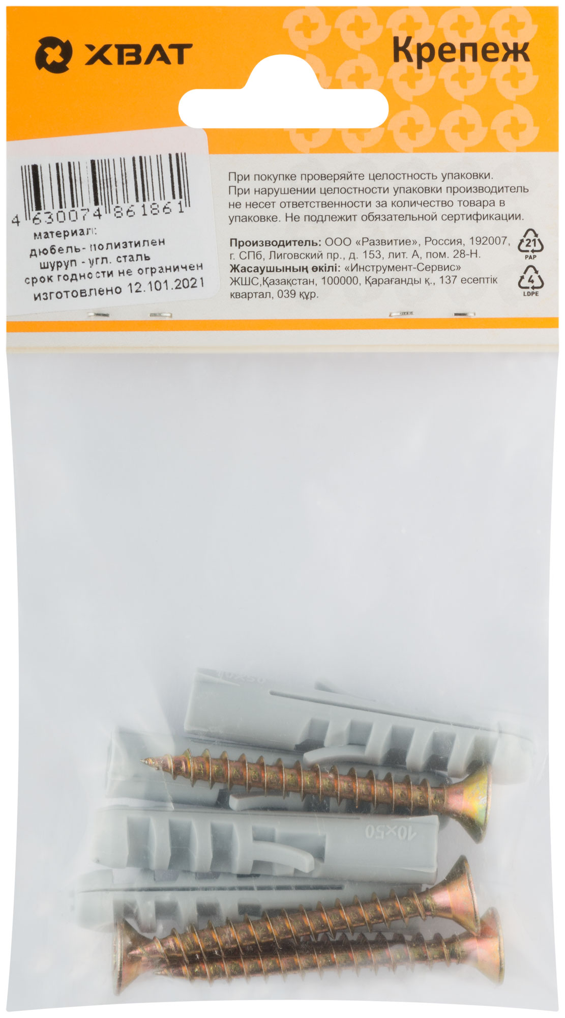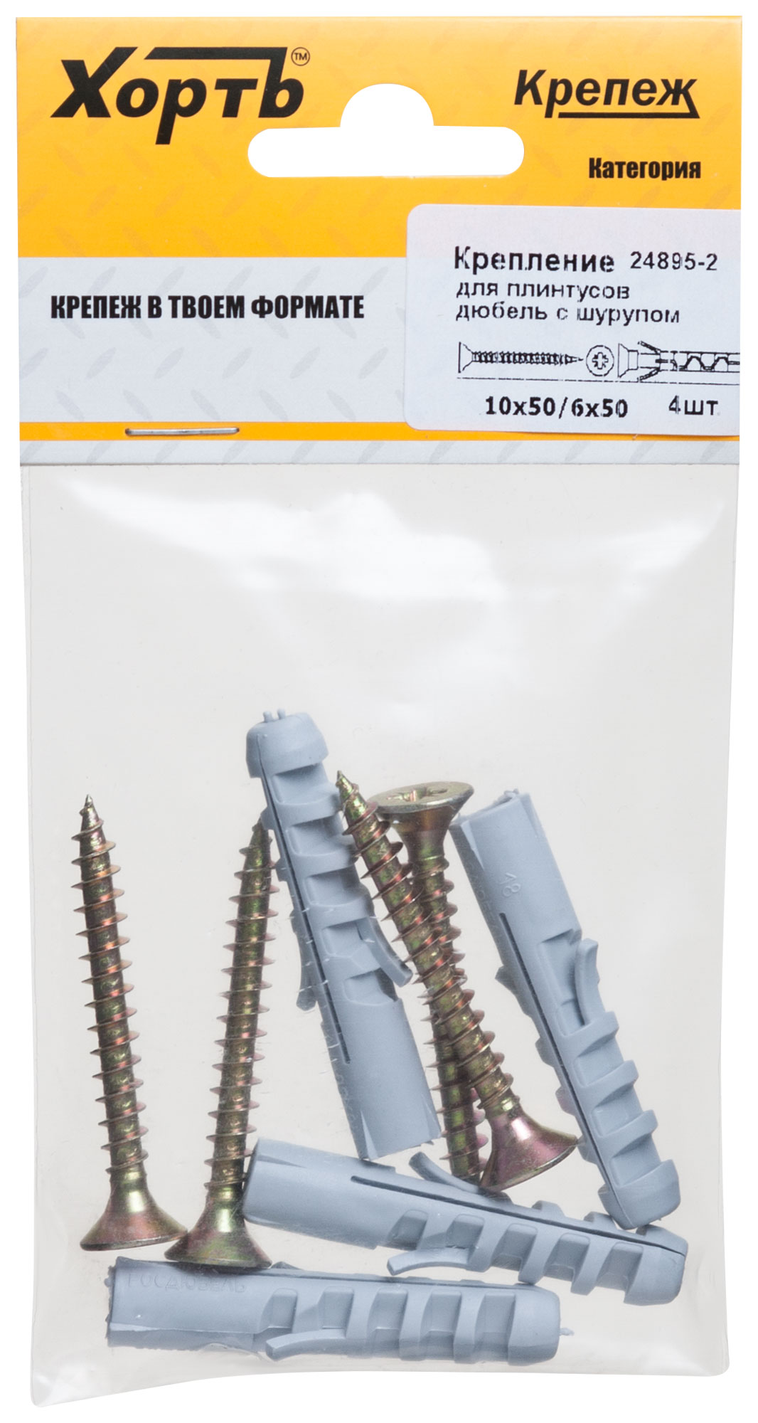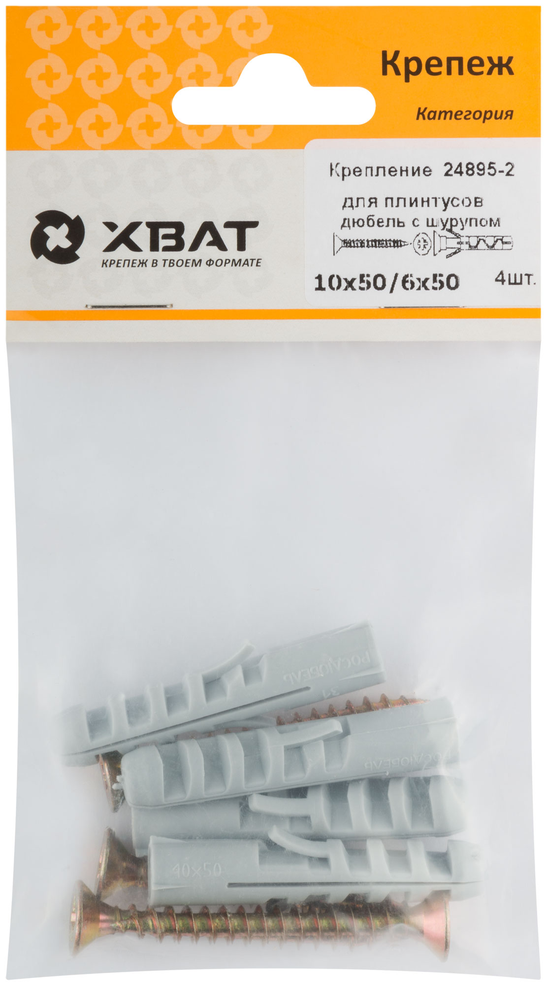 Крепление для плинтусов.Комплект: дюбель с шурупом 10х50/6х50 (фасовка 4 шт.)