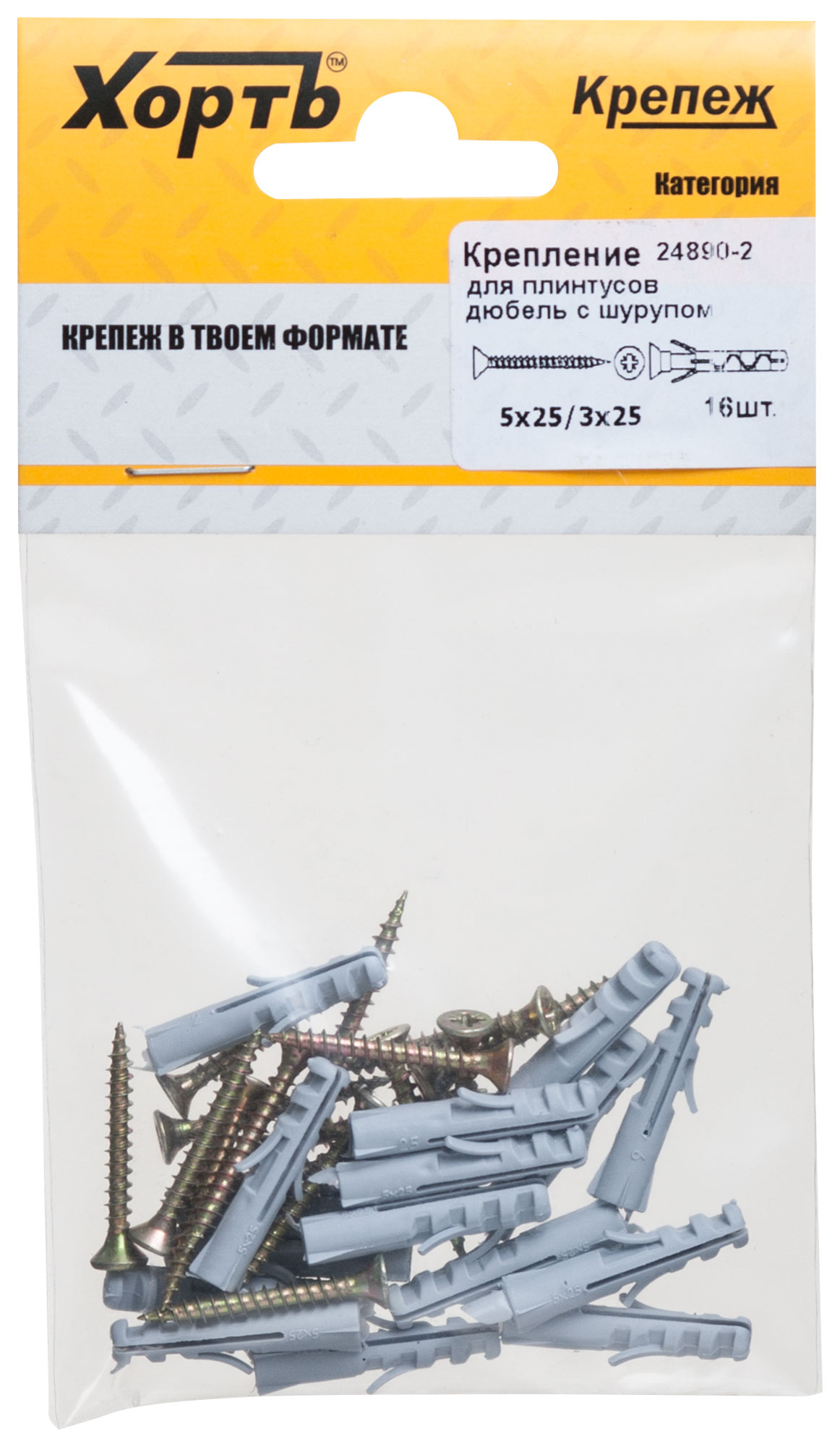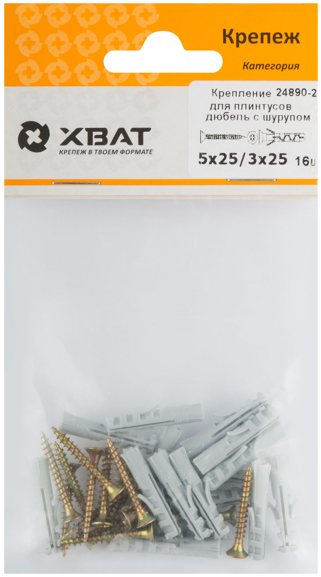 Крепление для плинтусов.Комплект: дюбель с шурупом 5х25/3х25 (фасовка 16 шт.)