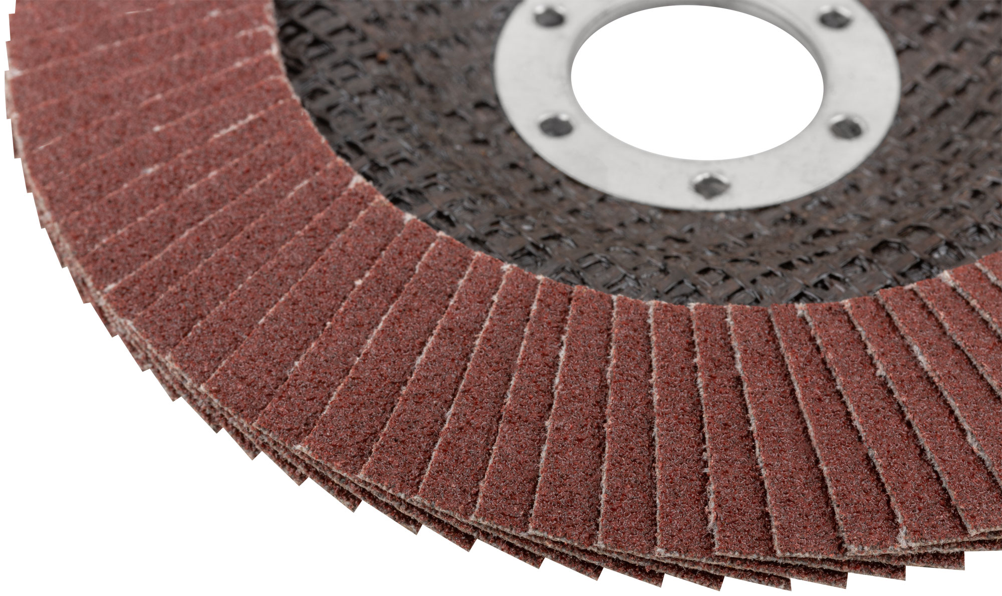 Тип 2 (Конический). Для обработки различных материалов. Используется с УШМ. 80 лепестков. Лепестки расположены под углом. Посадочный диаметр 22,2 мм. Материал: полимерная основа, образивный слой-оксид алюминия.